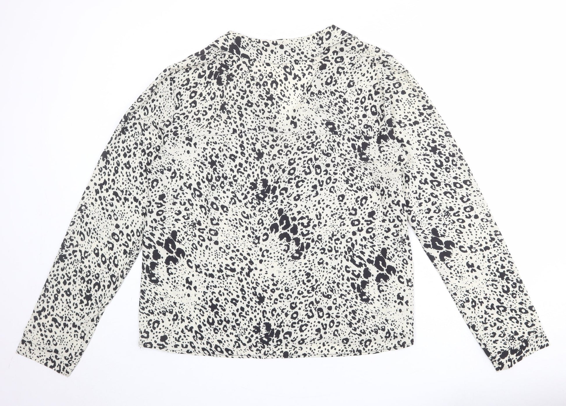 Boohoo Womens Ivory Animal Print Polyester Basic Blouse Size 16 Collared