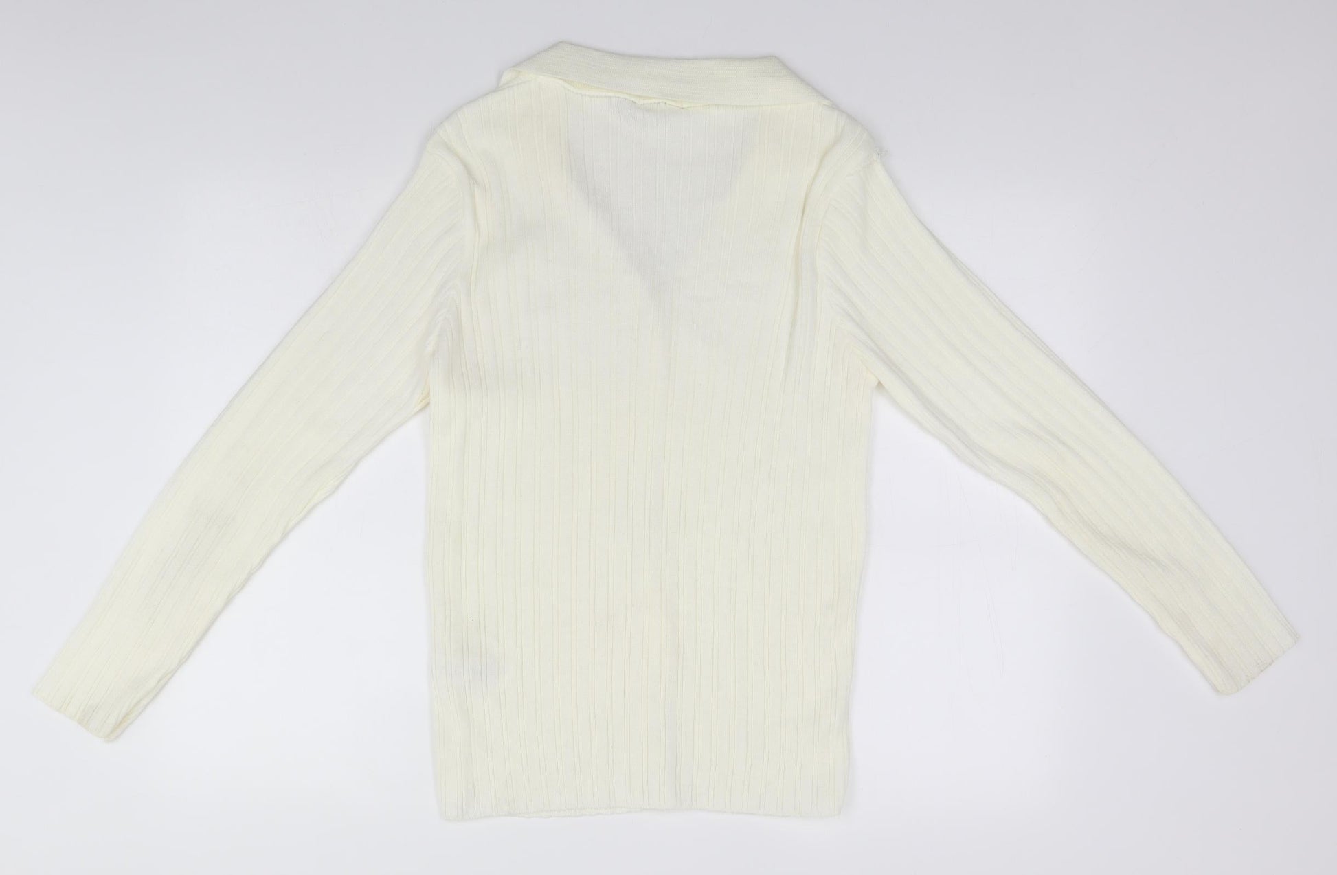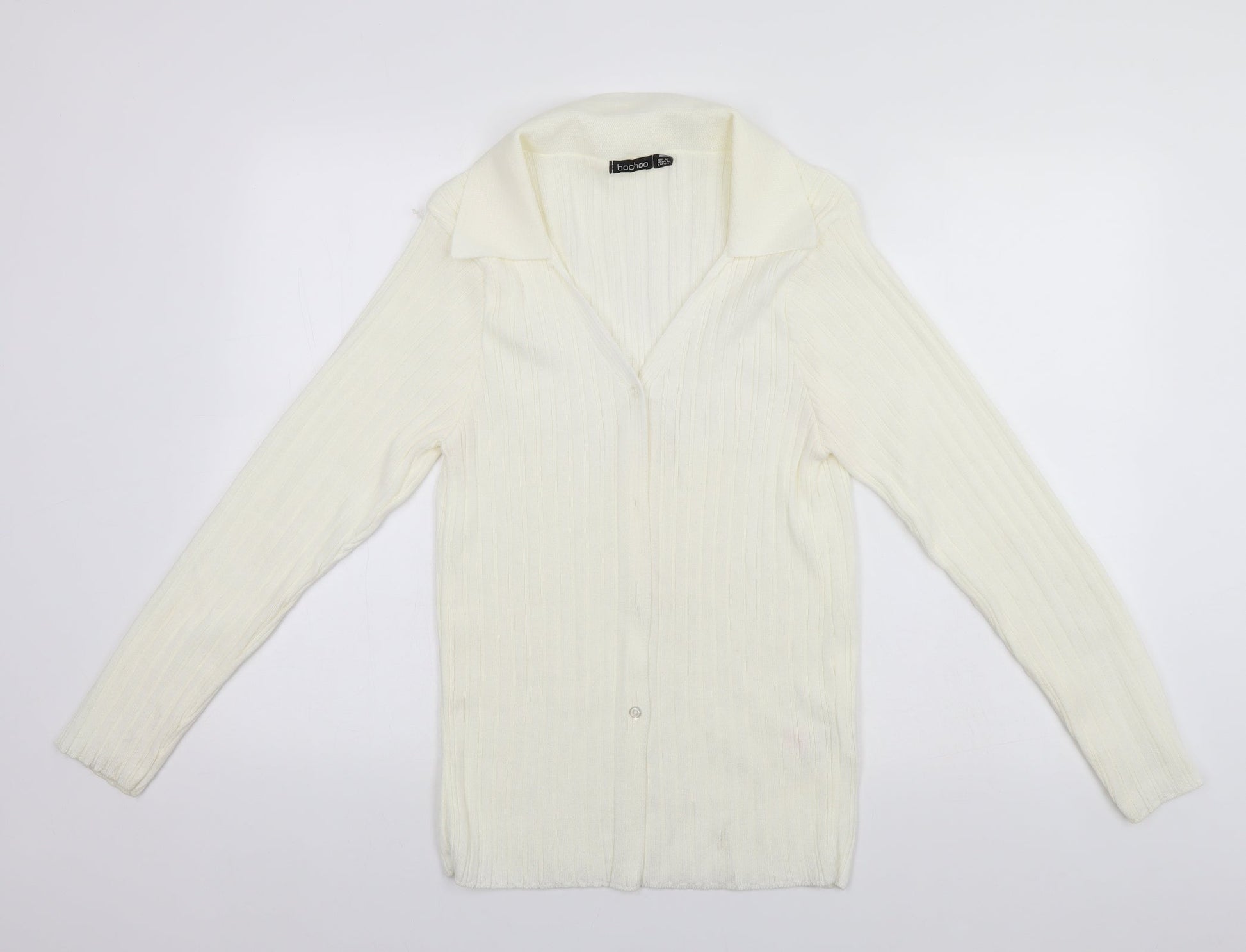 Boohoo Womens Ivory Collared Acrylic Cardigan Jumper Size 16