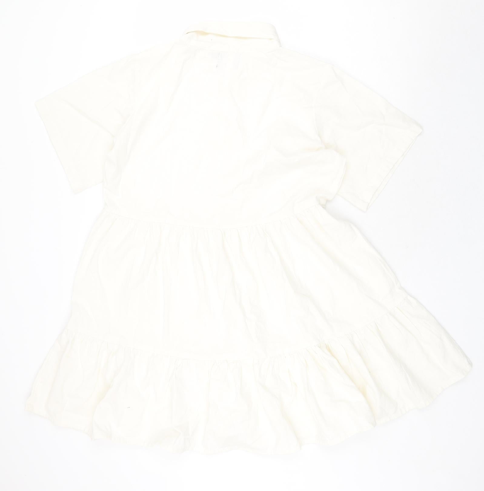 Boohoo Womens Ivory Cotton A-Line Size 14 V-Neck Zip