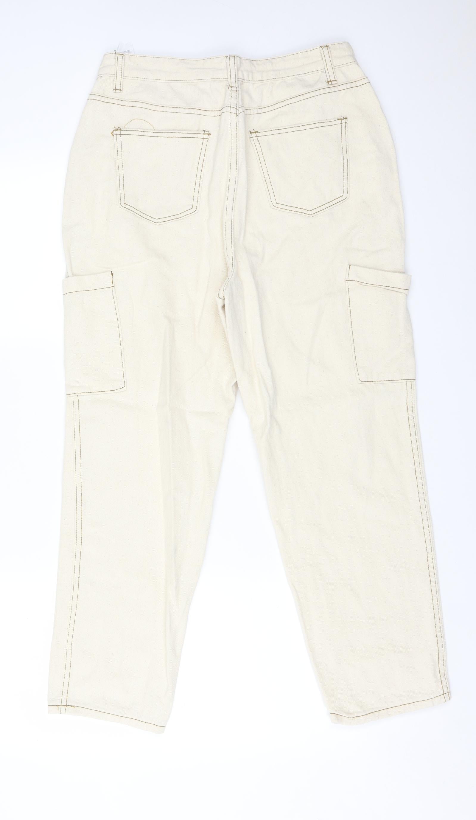 Boohoo Womens Ivory Cotton Straight Jeans Size 12 L25 in Regular