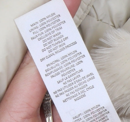 Boohoo Womens Ivory Faux Fur Hooded Puffer Jacket Size 10