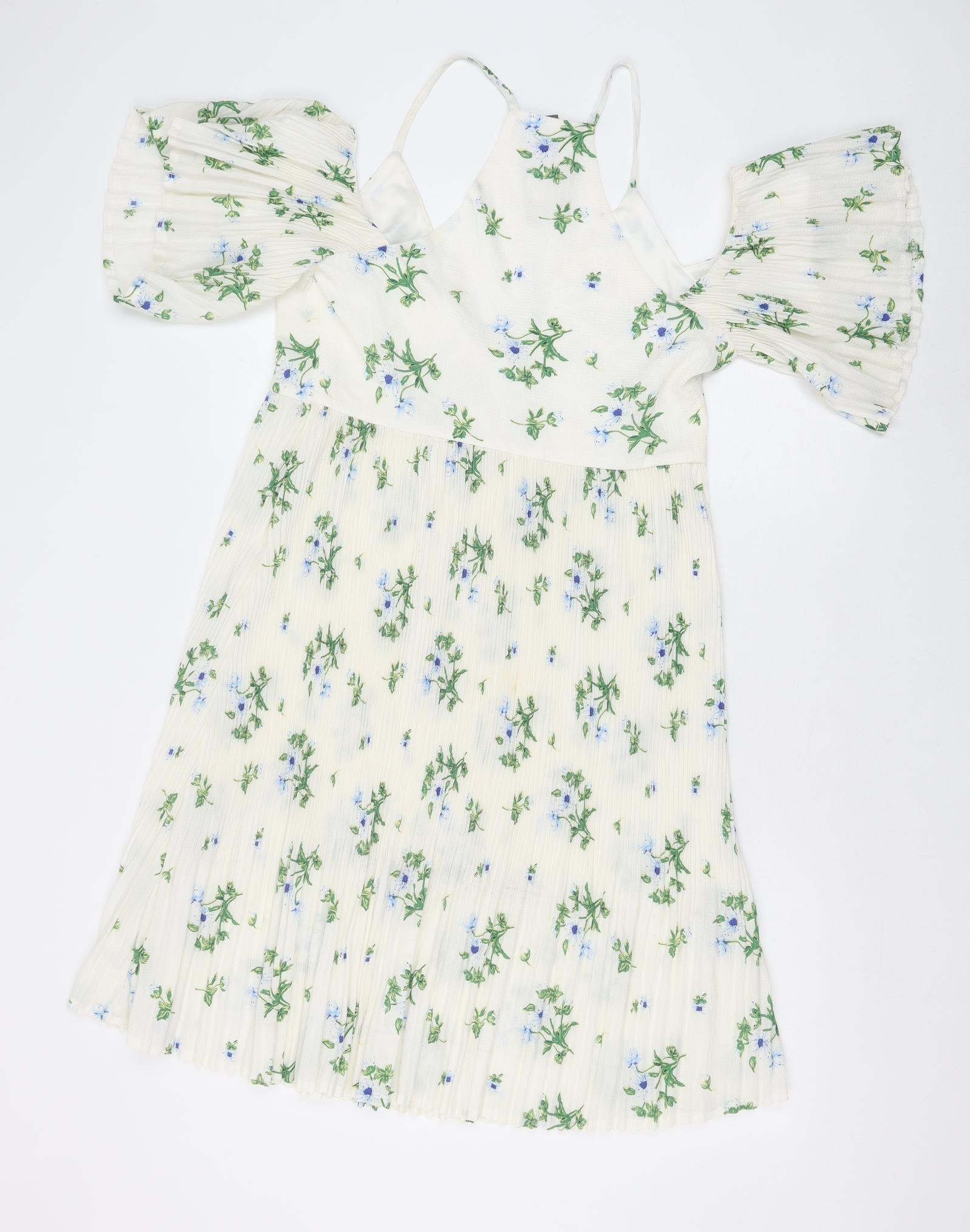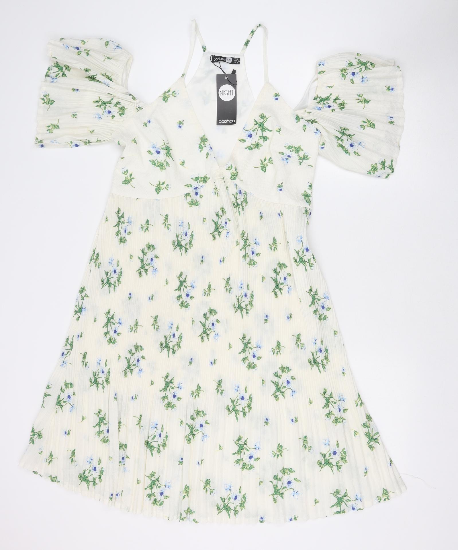 Boohoo Womens Ivory Floral Polyester Fit & Flare Size 8 V-Neck Zip