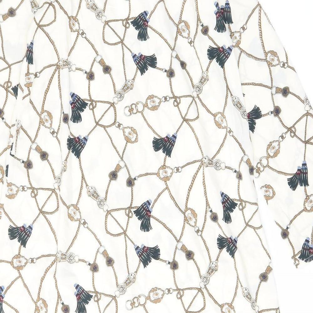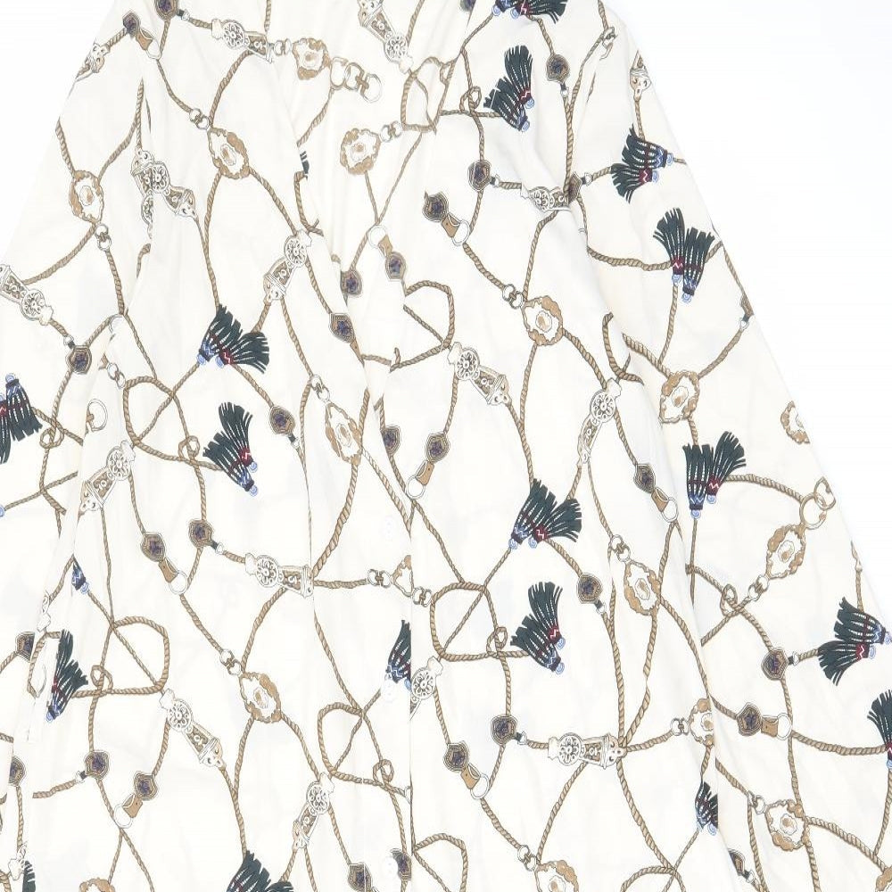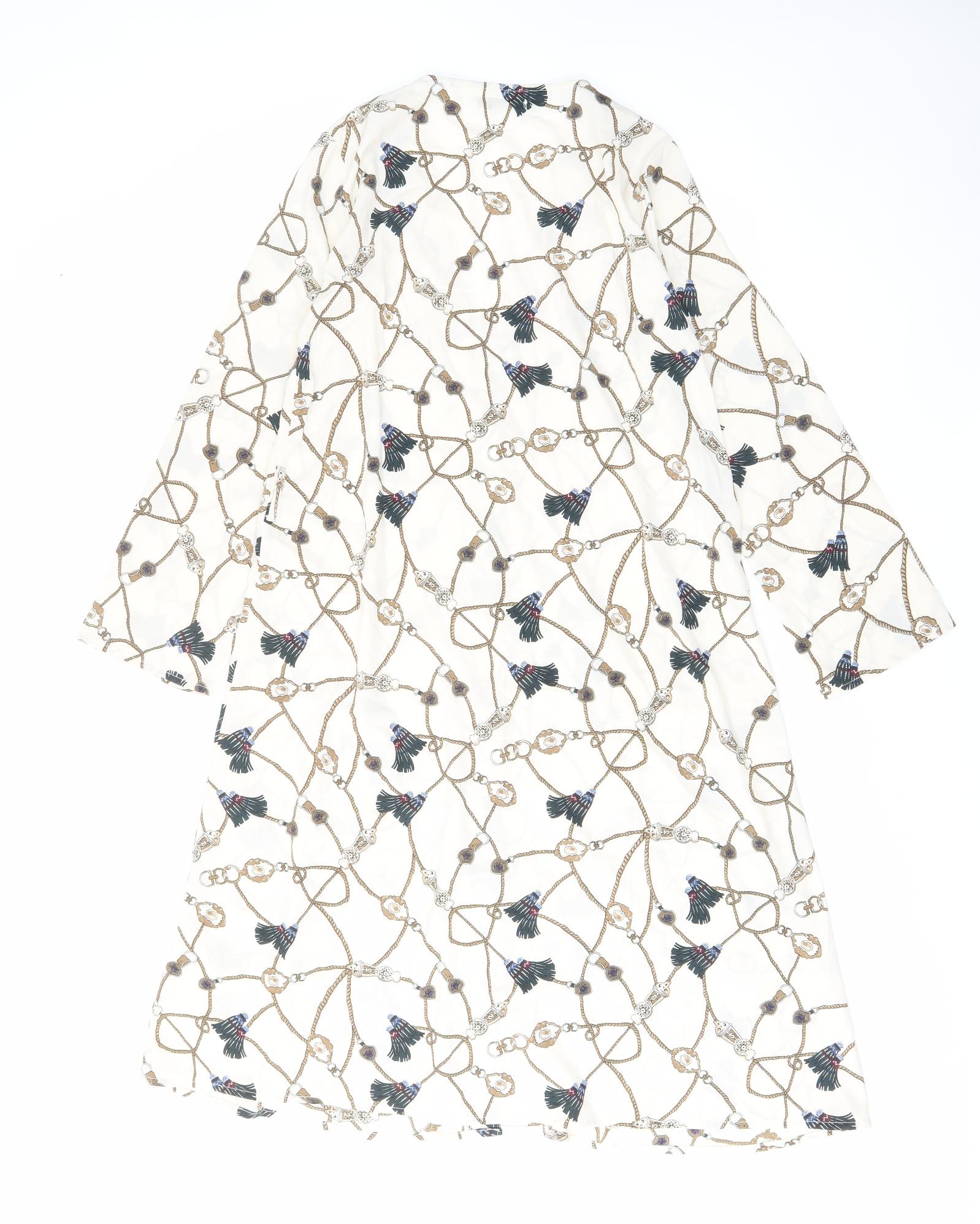 Boohoo Womens Ivory Geometric Polyester Sheath Size 10 V-Neck Button