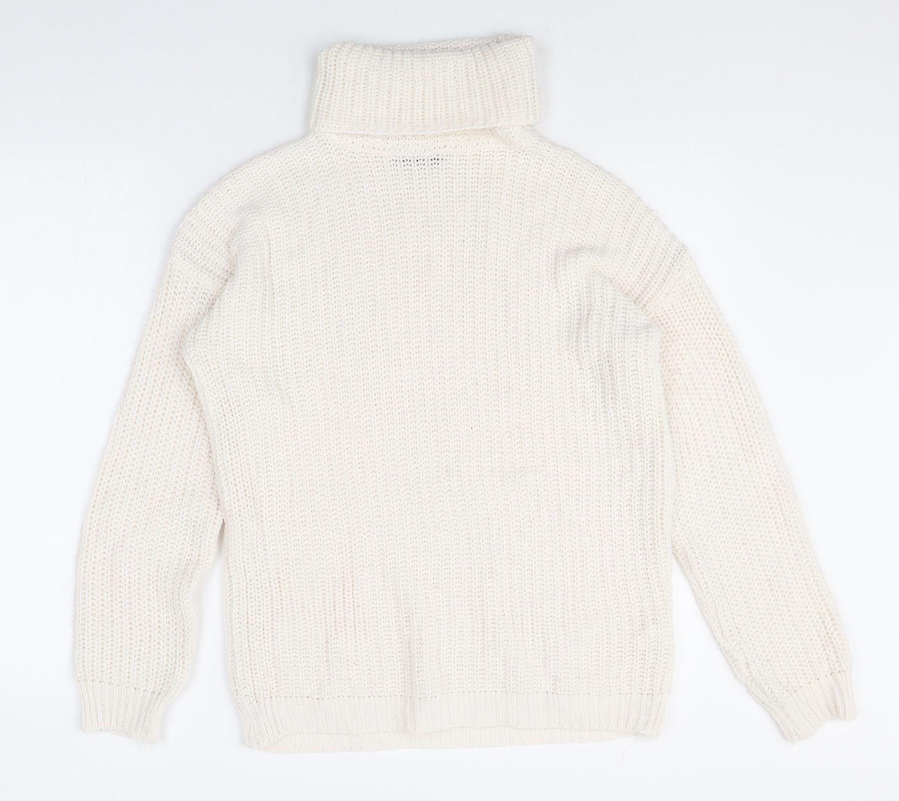 Boohoo Womens Ivory Roll Neck Acrylic Pullover Jumper Size 8