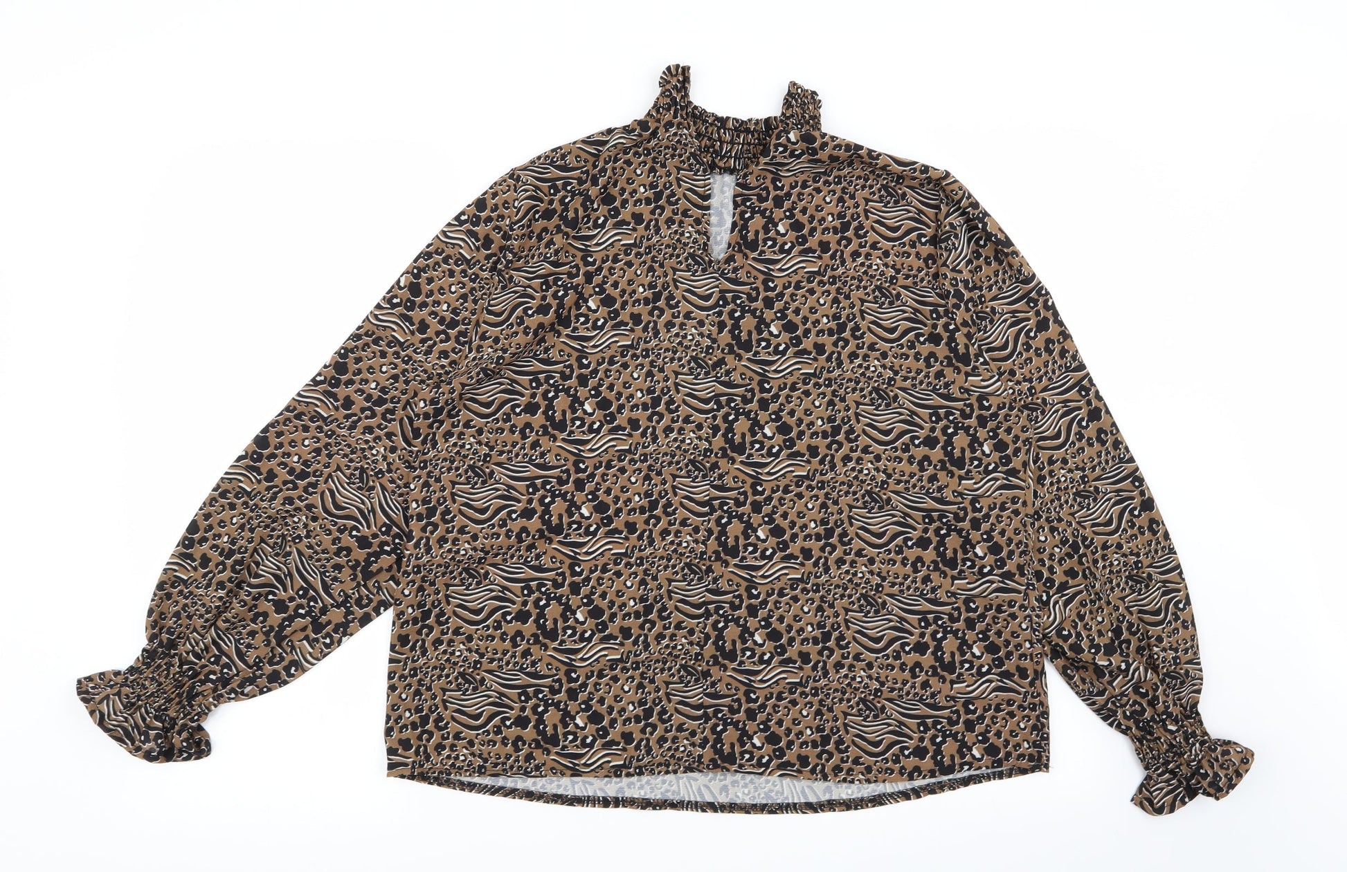Boohoo Womens Multicoloured Animal Print Basic Blouse Size 10