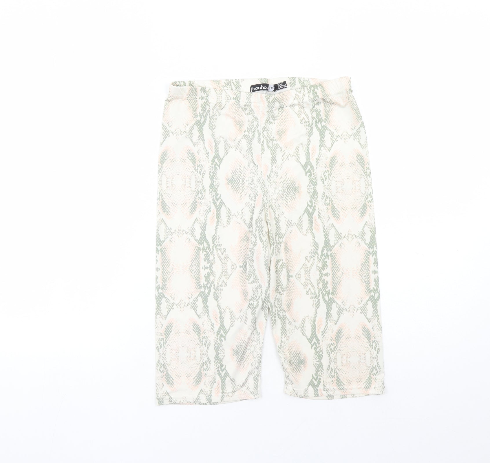 Boohoo Womens Multicoloured Animal Print Polyester Compression Shorts Size 12 L13 in Regular - Elasticated Waist Snakeskin Pattern