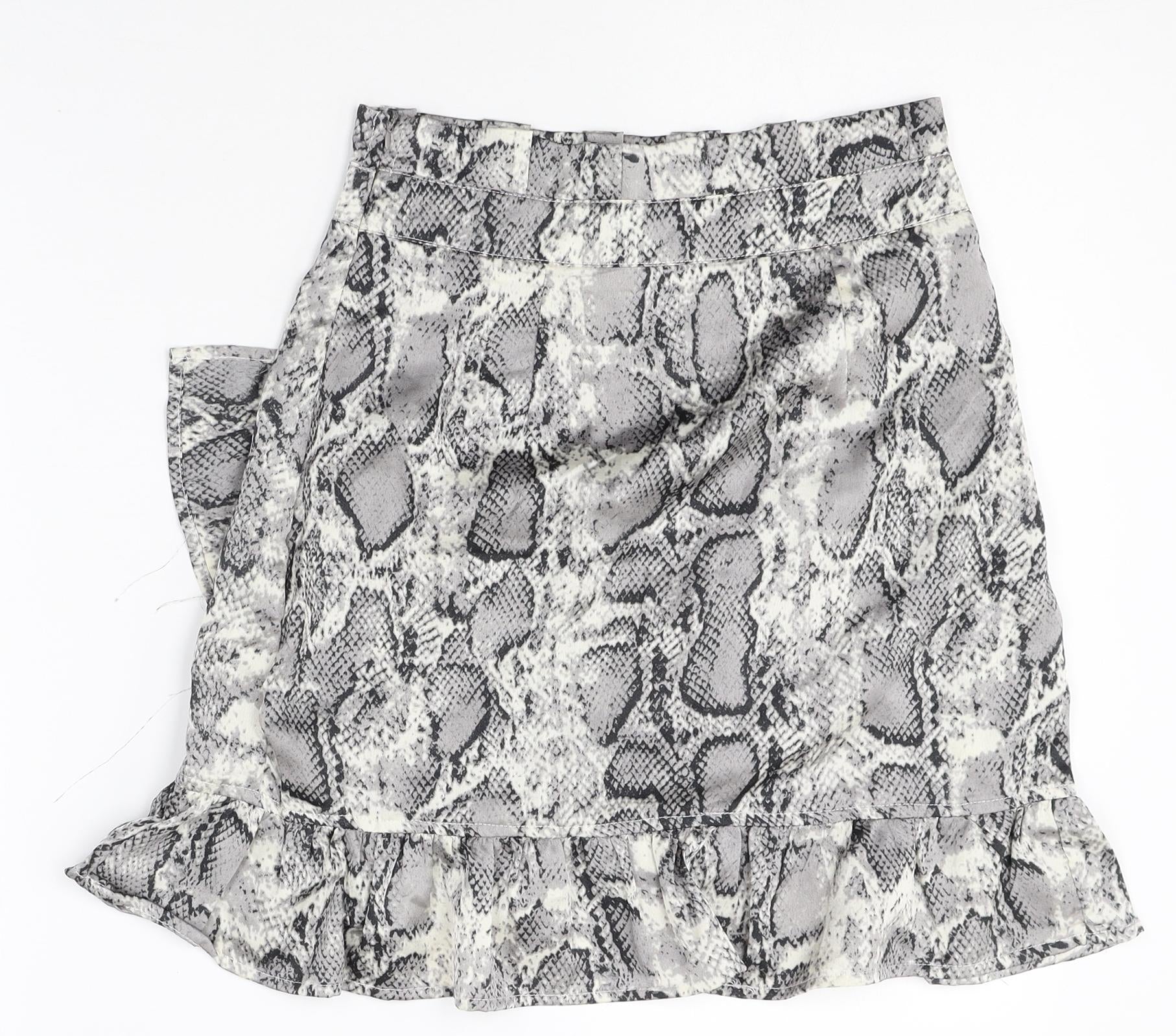 Boohoo Womens Multicoloured Animal Print Polyester Skater Skirt Size 6 Zip - Snakeskin Pattern