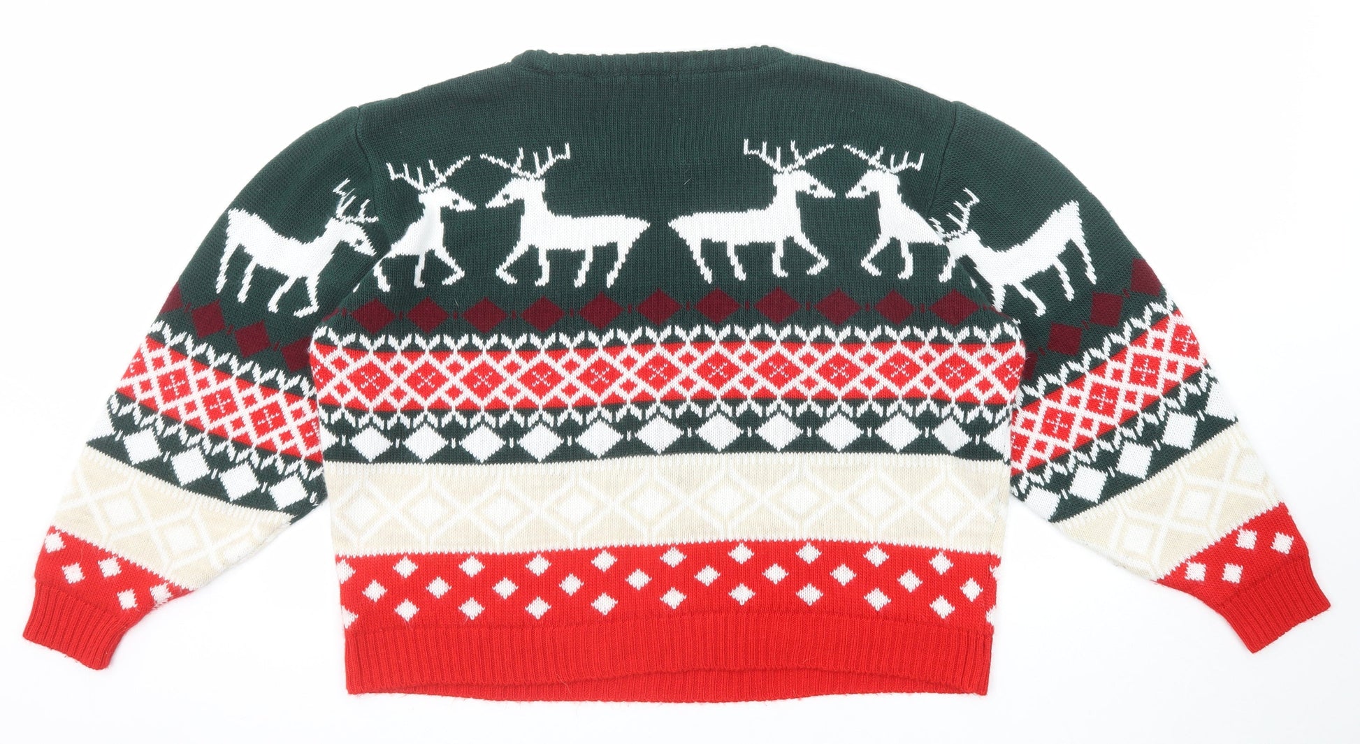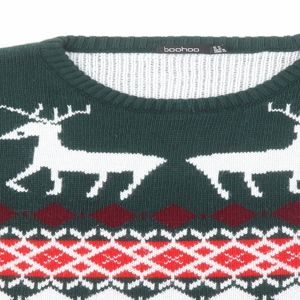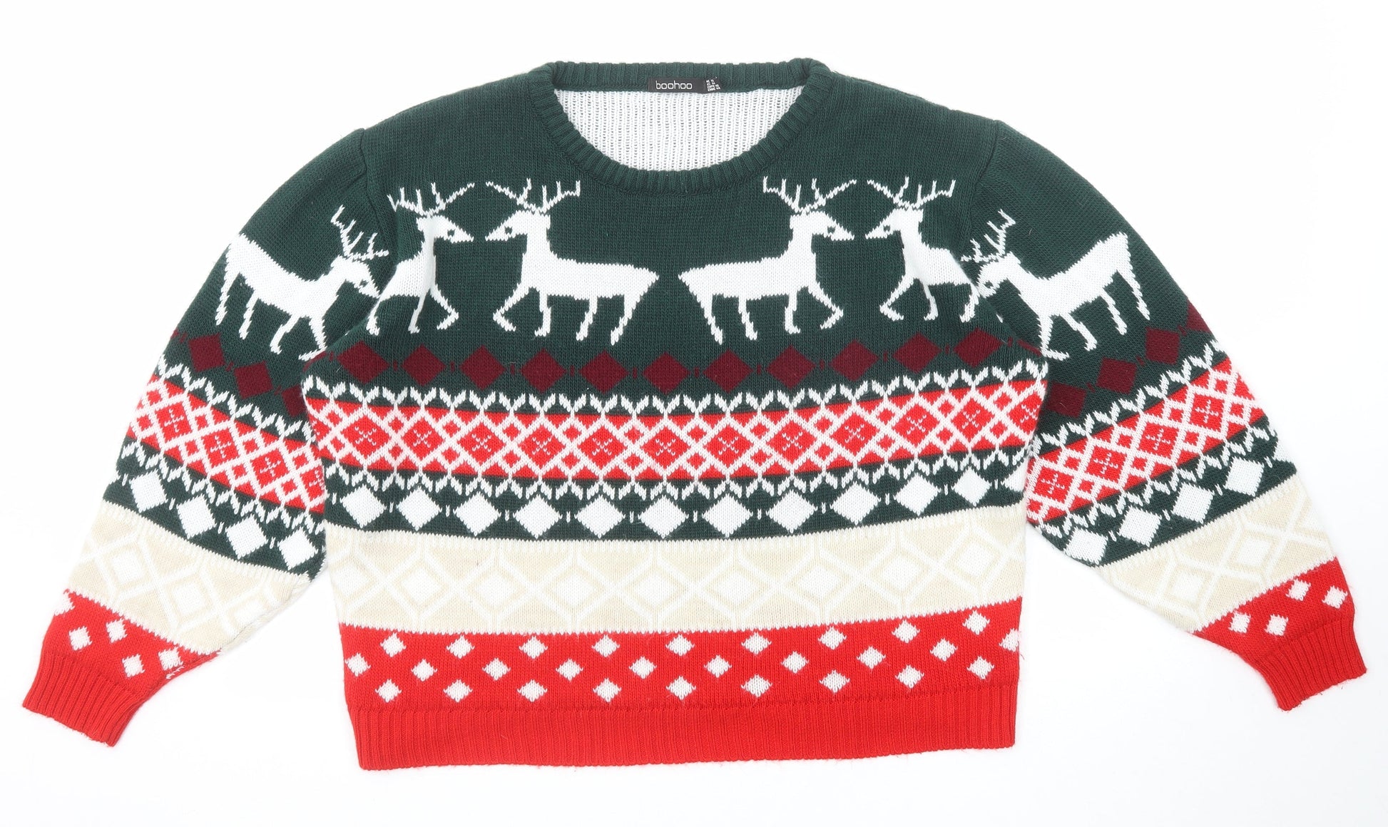 Boohoo Womens Multicoloured Crew Neck Geometric Acrylic Pullover Jumper Size 18