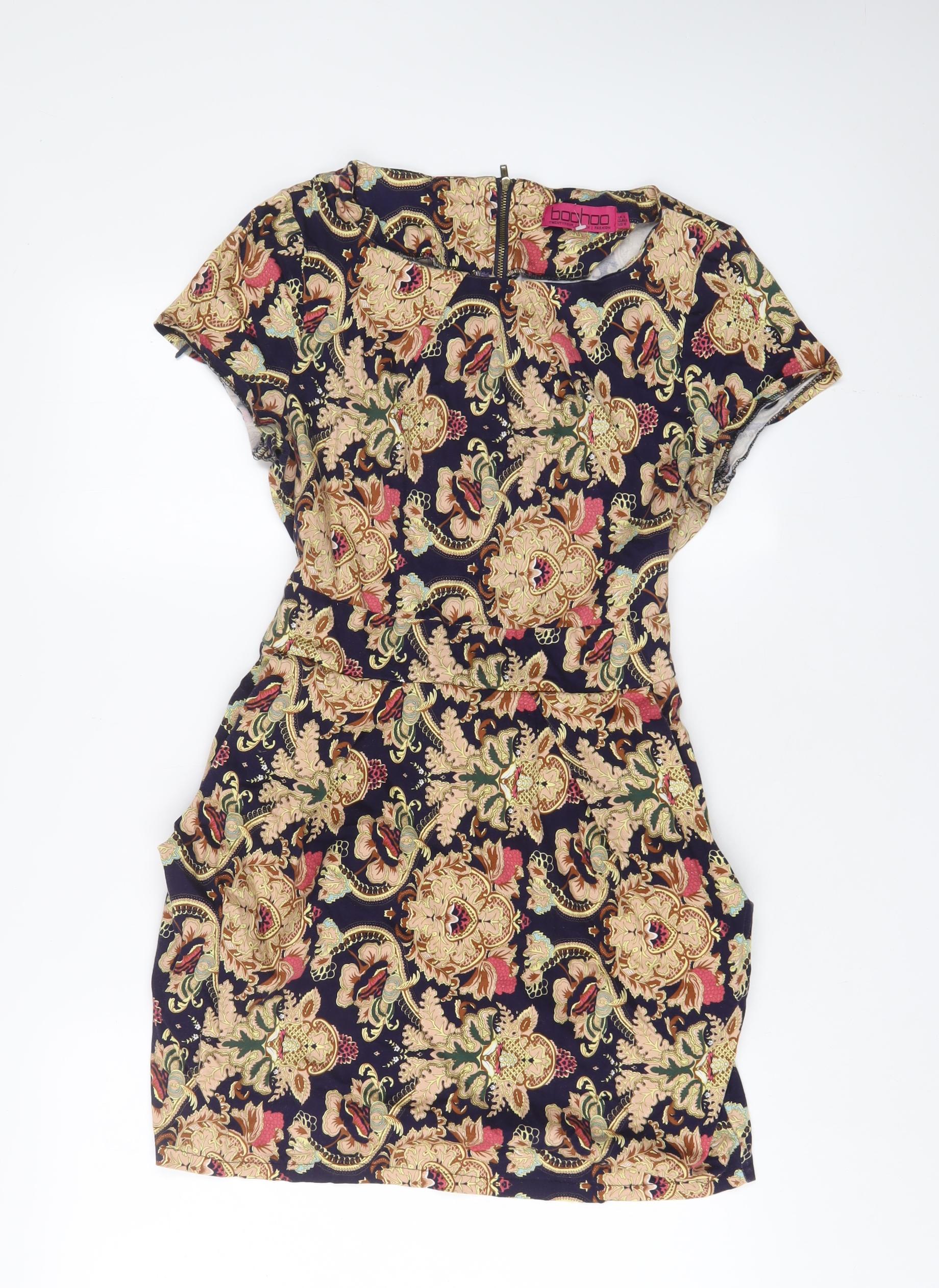 Boohoo Womens Multicoloured Fair Isle Cotton A-Line Size 14 Boat Neck Zip