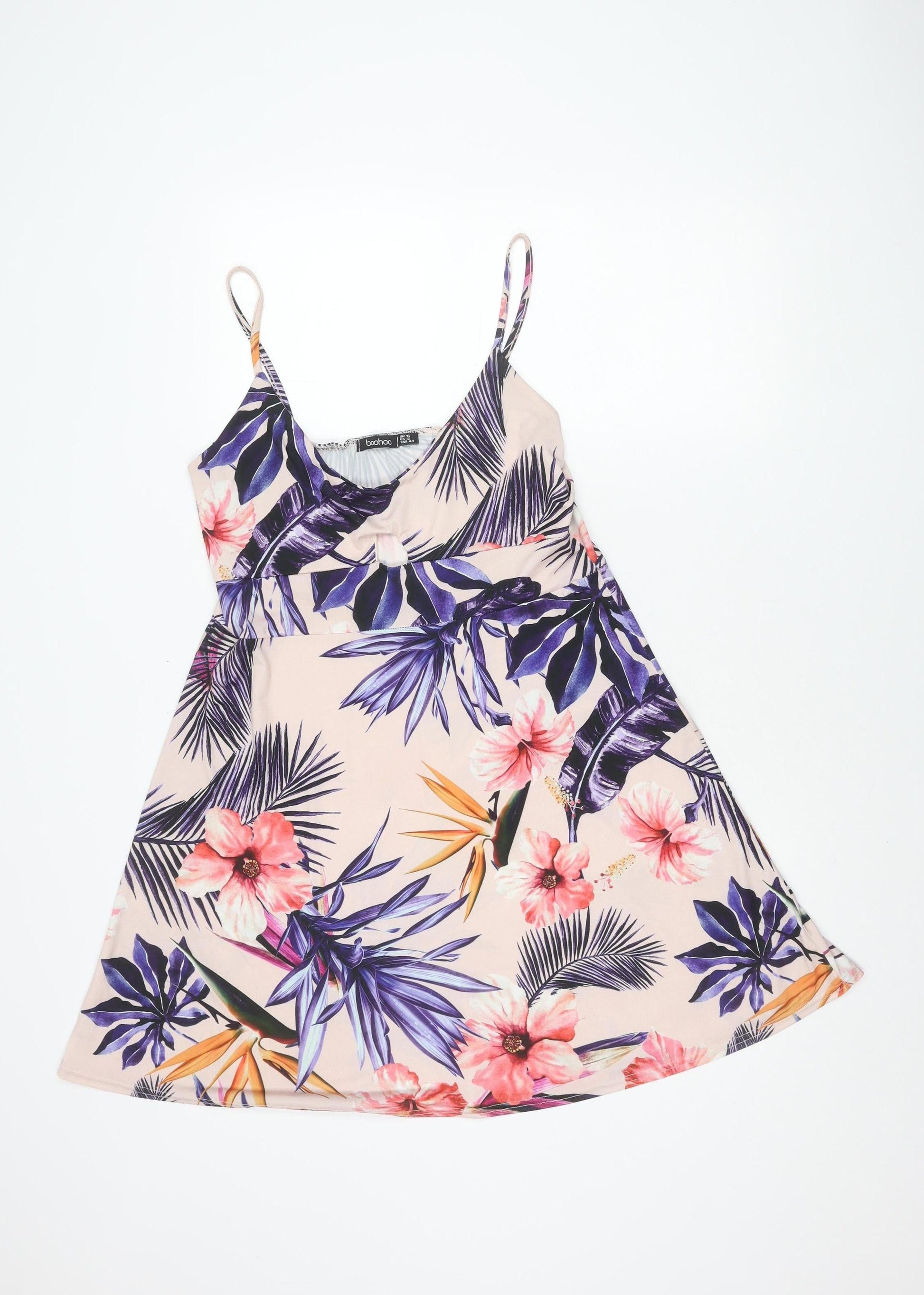 Boohoo Womens Multicoloured Floral A-Line Dress Size 16