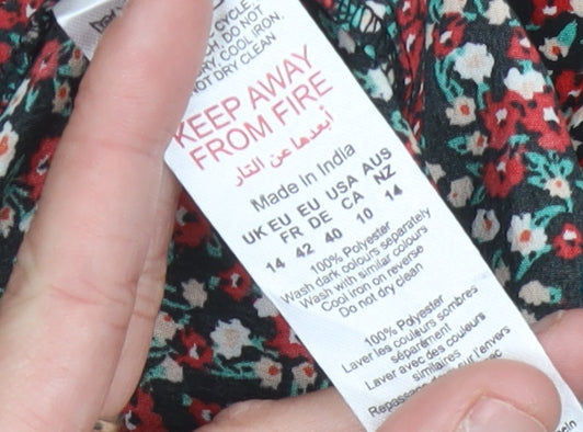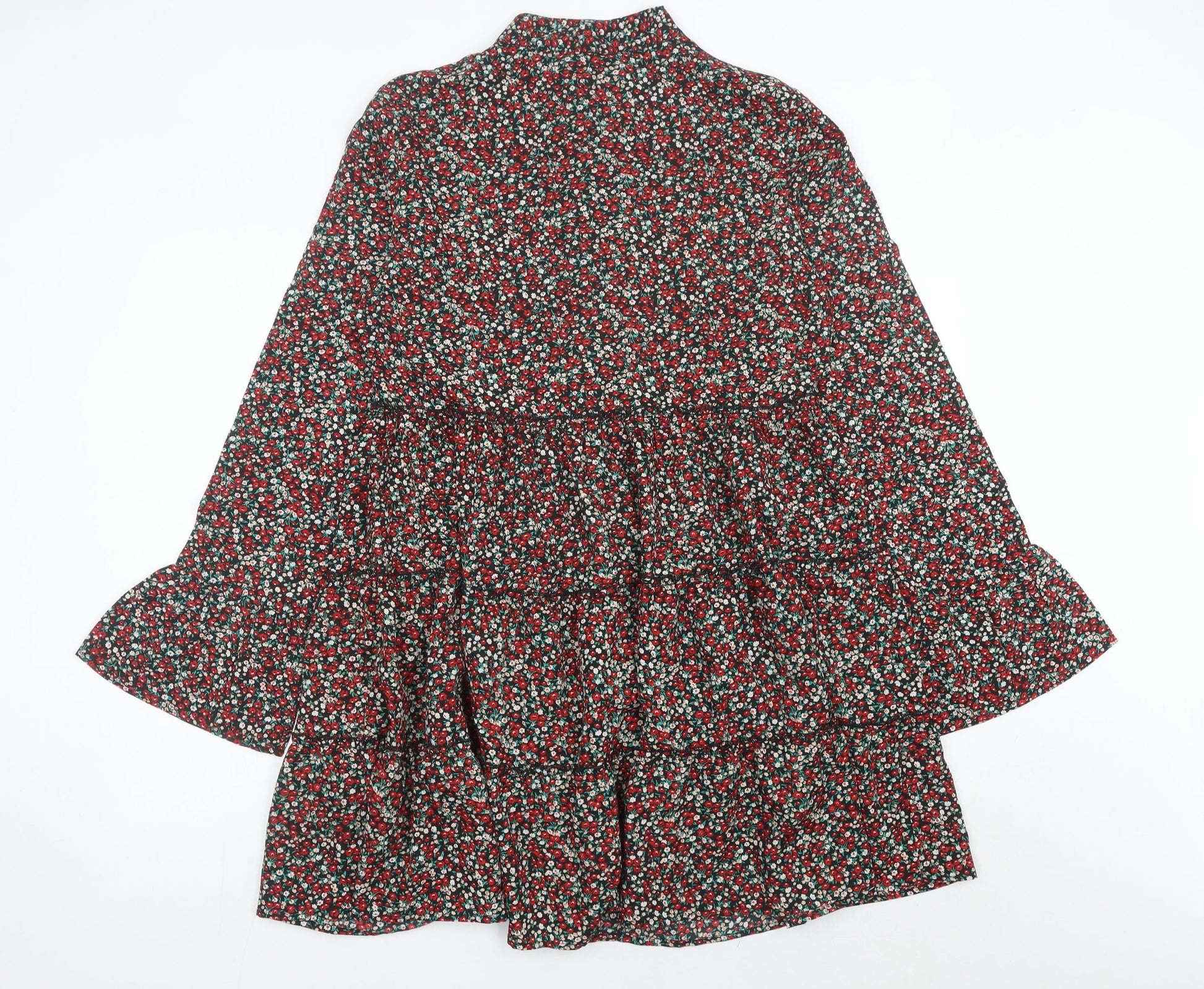 Boohoo Womens Multicoloured Floral A-Line Dress UK 14 Long Sleeve Short