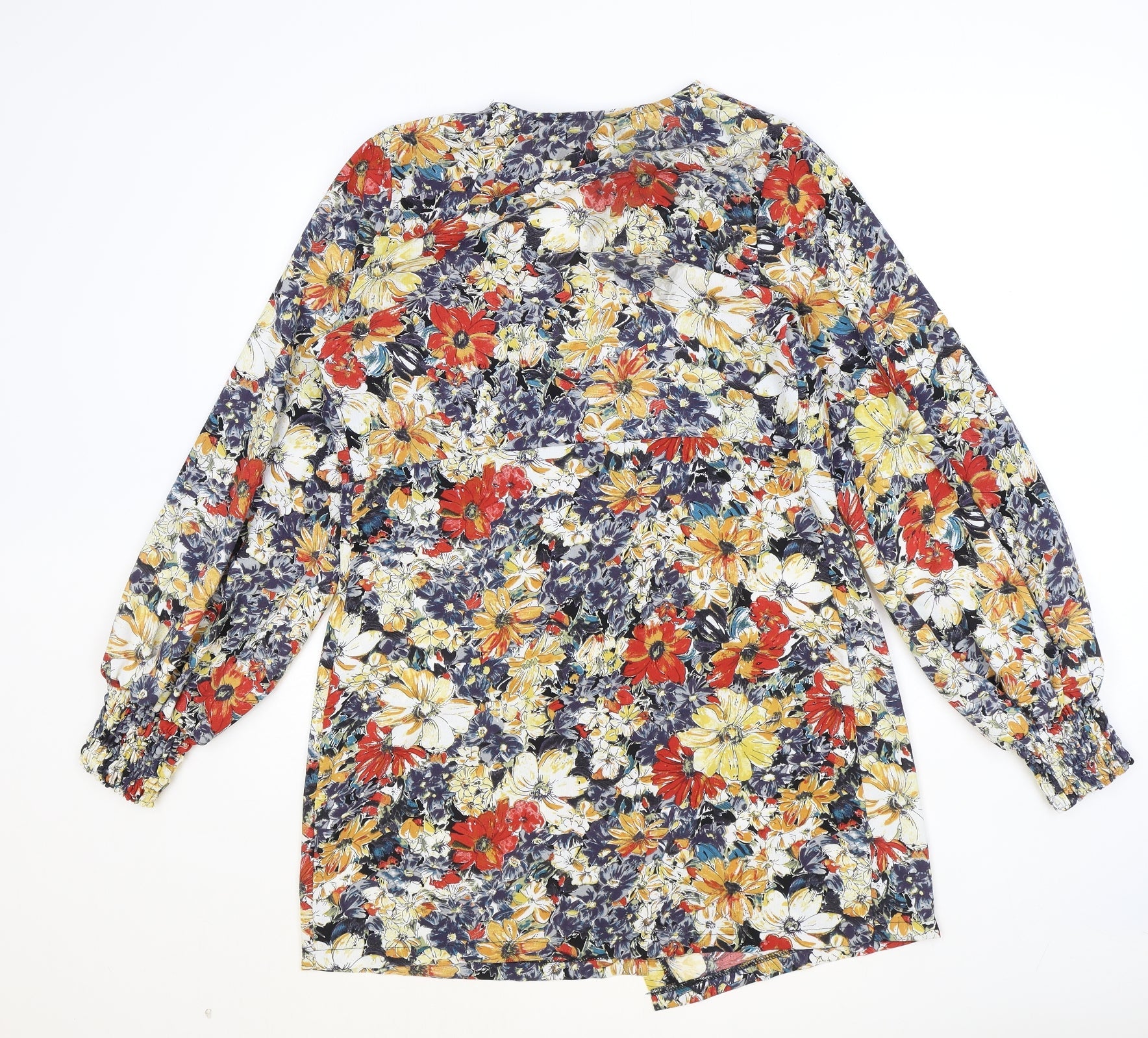 Boohoo Womens Multicoloured Floral Polyacrylate Fibre Basic Blouse Size 10 V-Neck