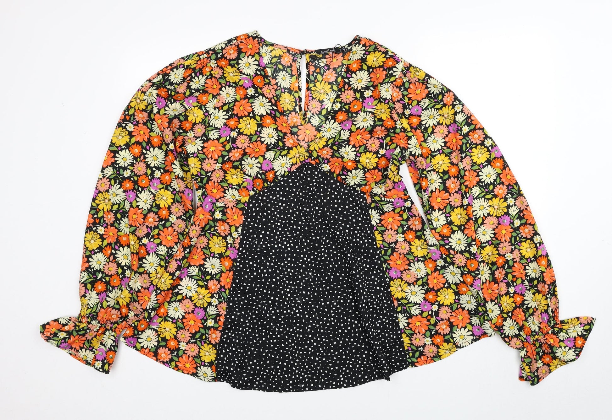 Boohoo Womens Multicoloured Floral Polyester Basic Blouse Size 10 V-Neck
