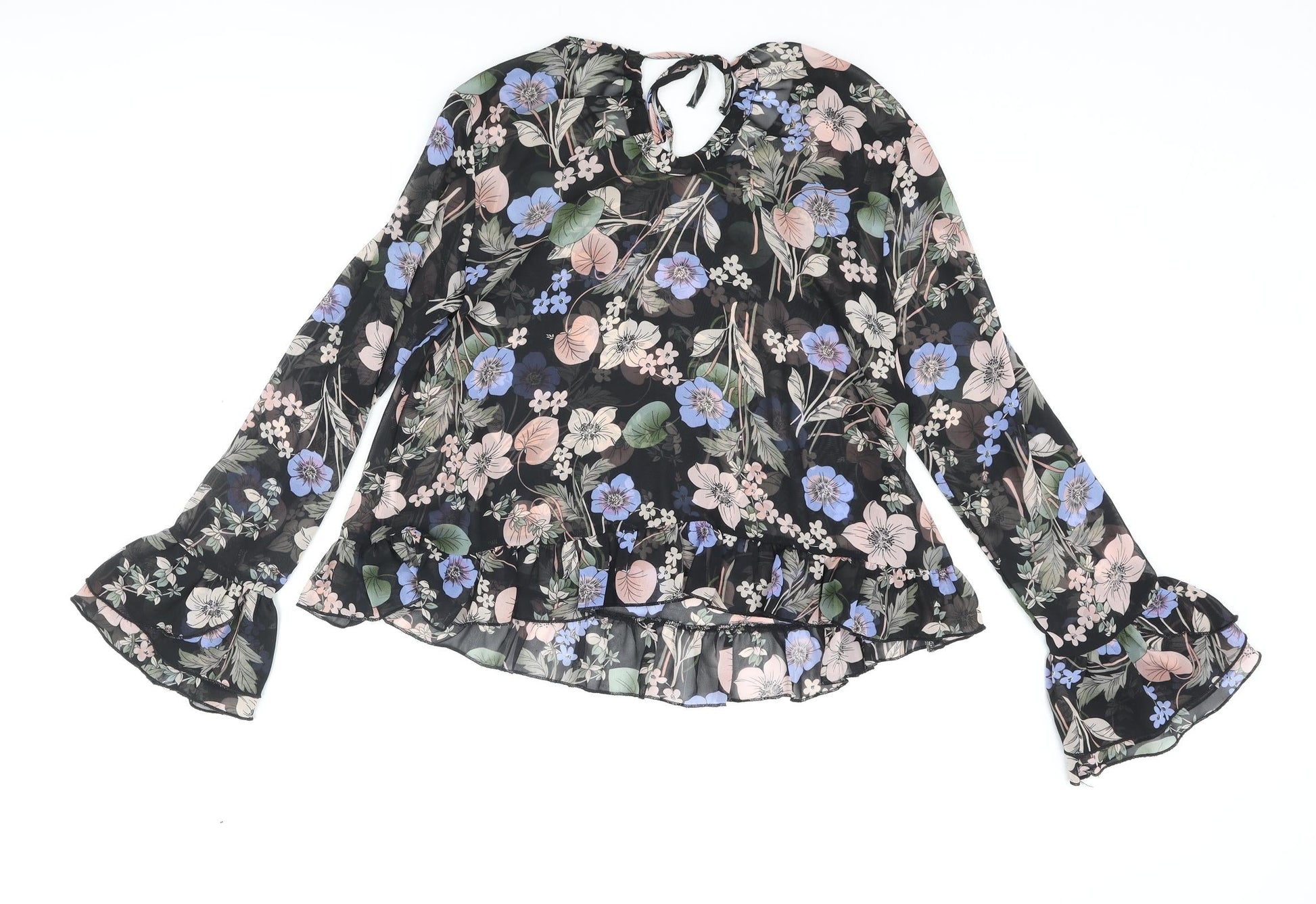 Boohoo Womens Multicoloured Floral Polyester Basic Blouse Size 8 Round Neck - Semi Sheer Frill