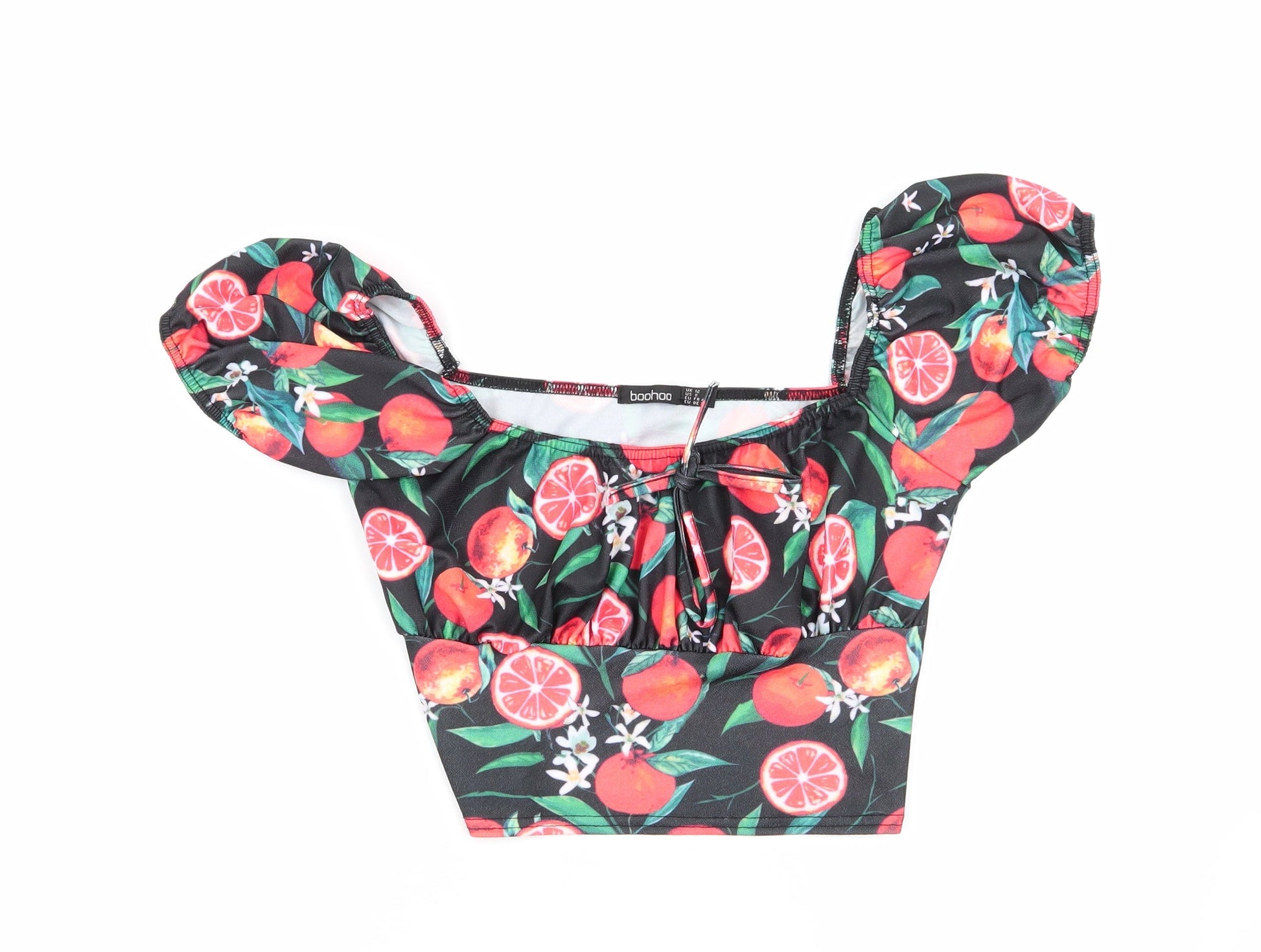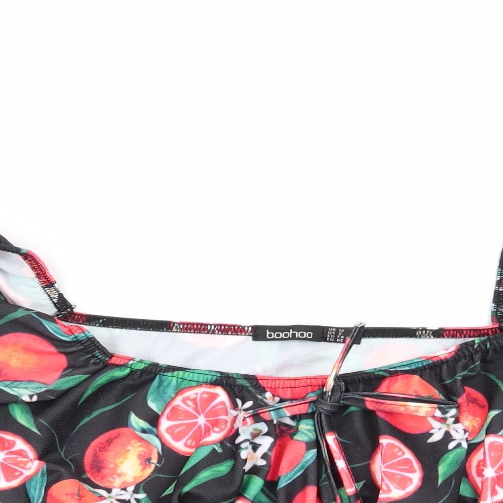 Boohoo Womens Multicoloured Geometric Basic Blouse Size 12