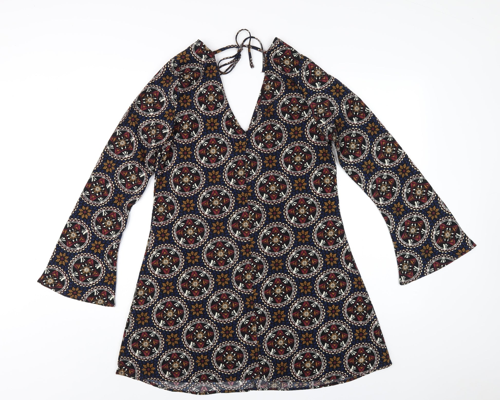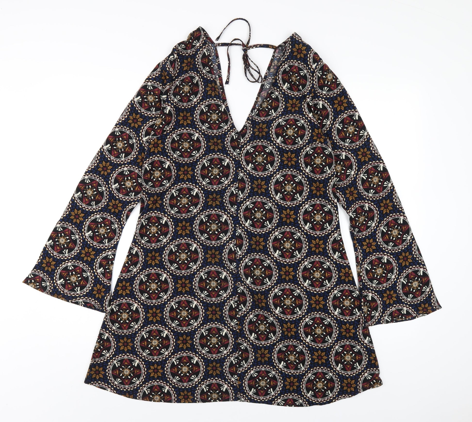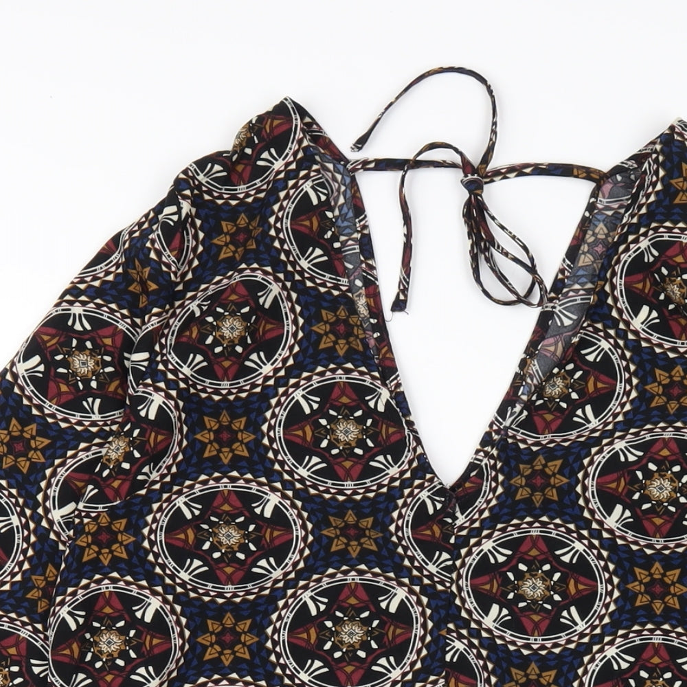 Boohoo Womens Multicoloured Geometric Polyester A-Line Size 10 V-Neck Pullover
