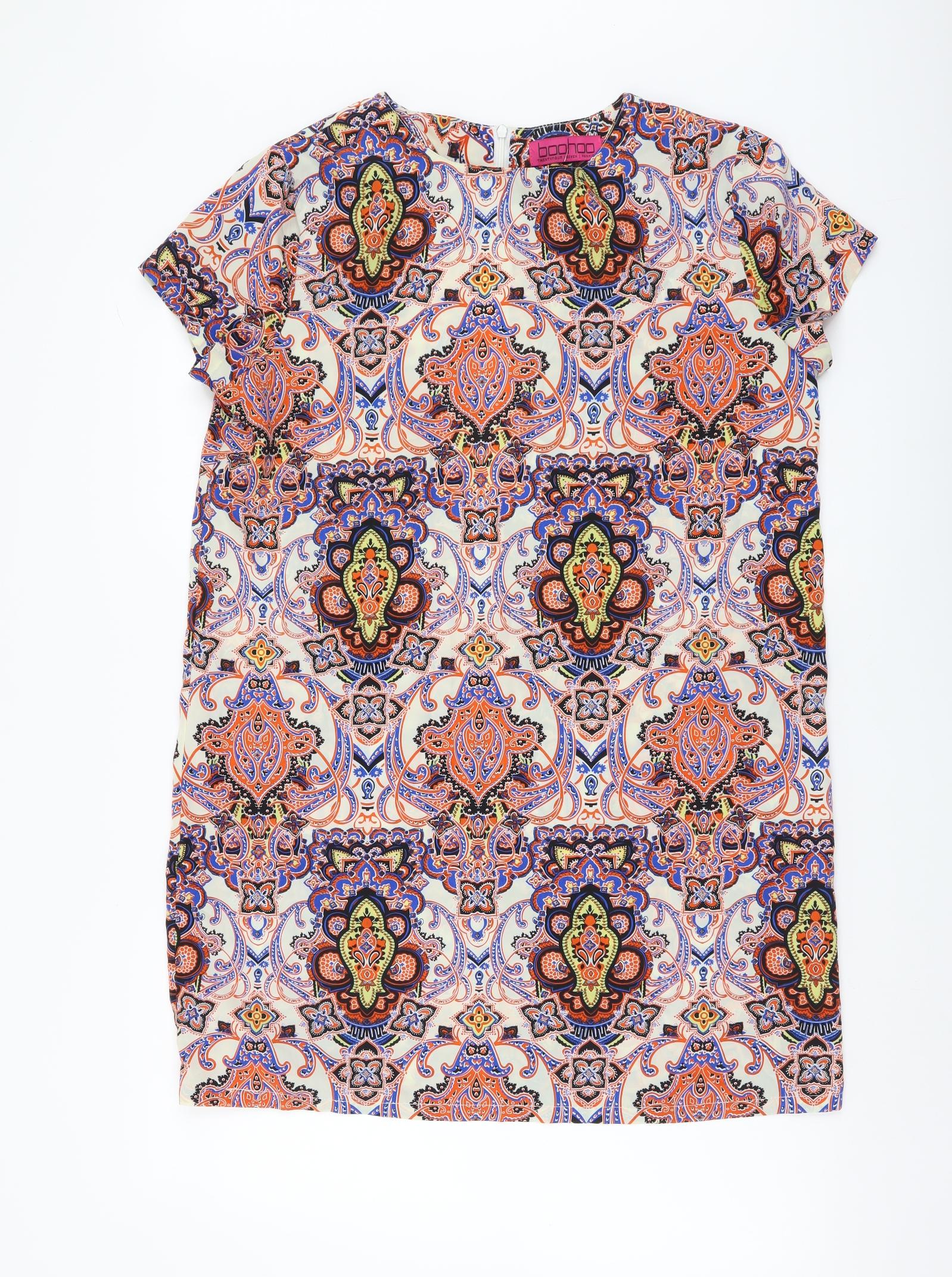 Boohoo Womens Multicoloured Geometric Polyester A-Line Size 12 Round Neck Zip