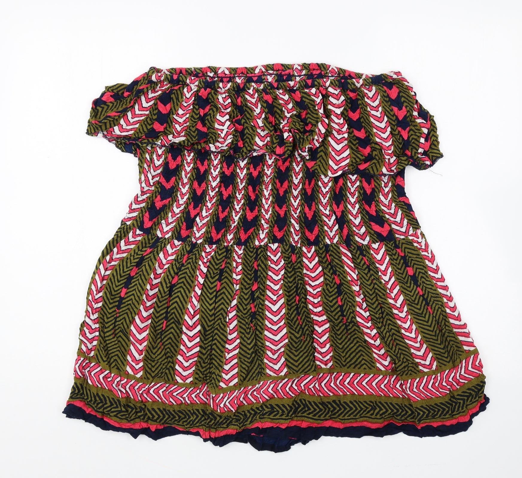 Boohoo Womens Multicoloured Geometric Polyester Basic Blouse Size 12 Boat Neck