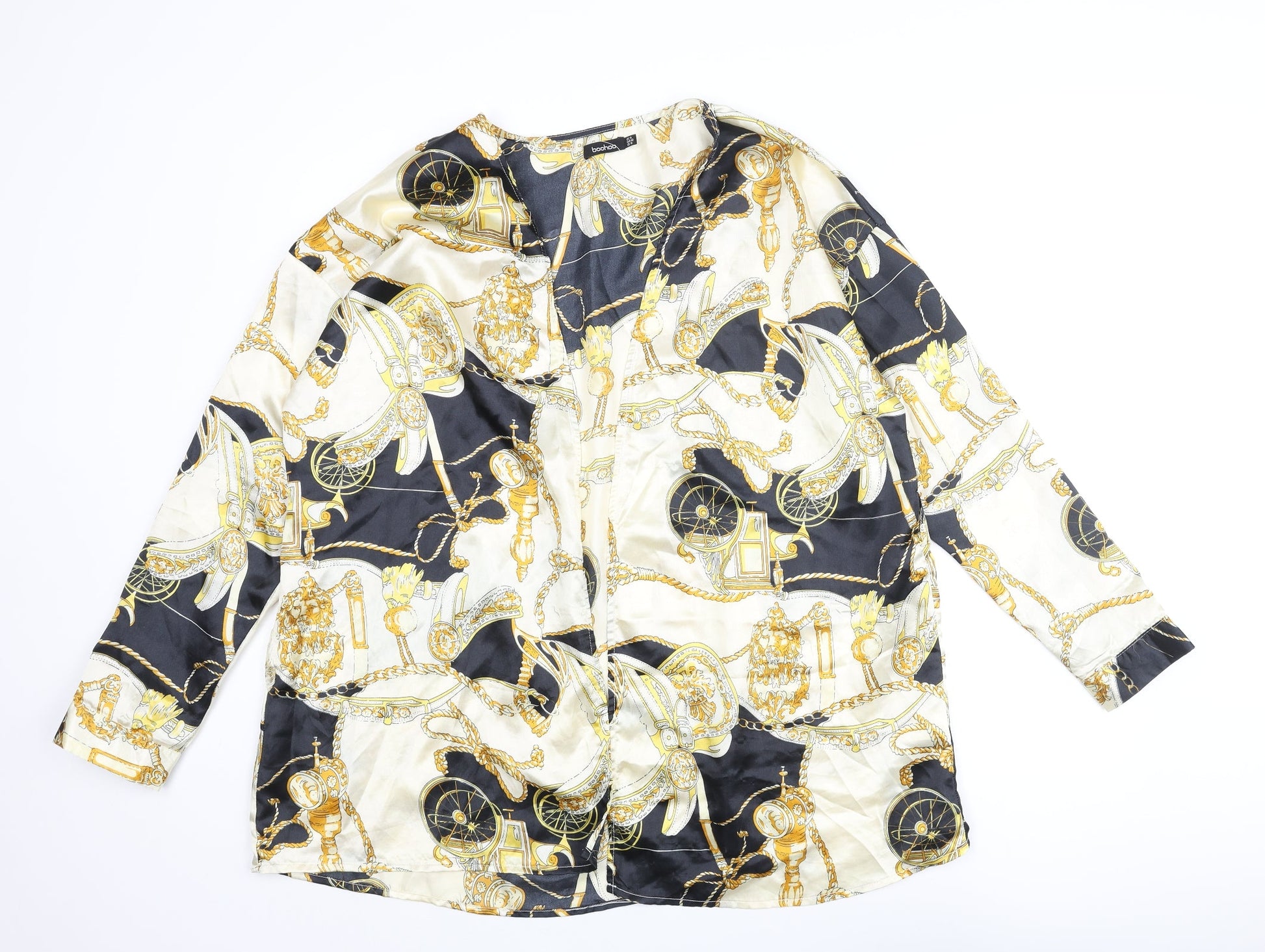 Boohoo Womens Multicoloured Geometric Polyester Kimono Blouse Size 14 V-Neck - Chain and Carriage Pattern