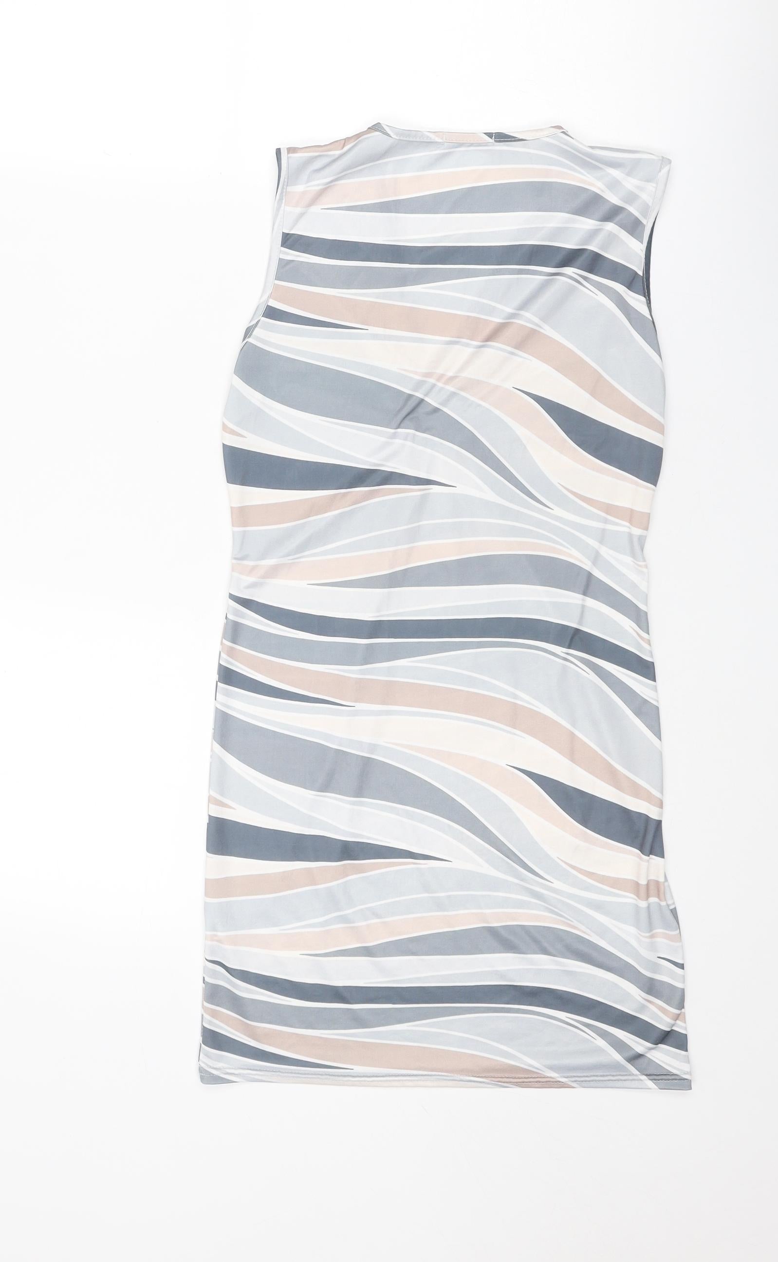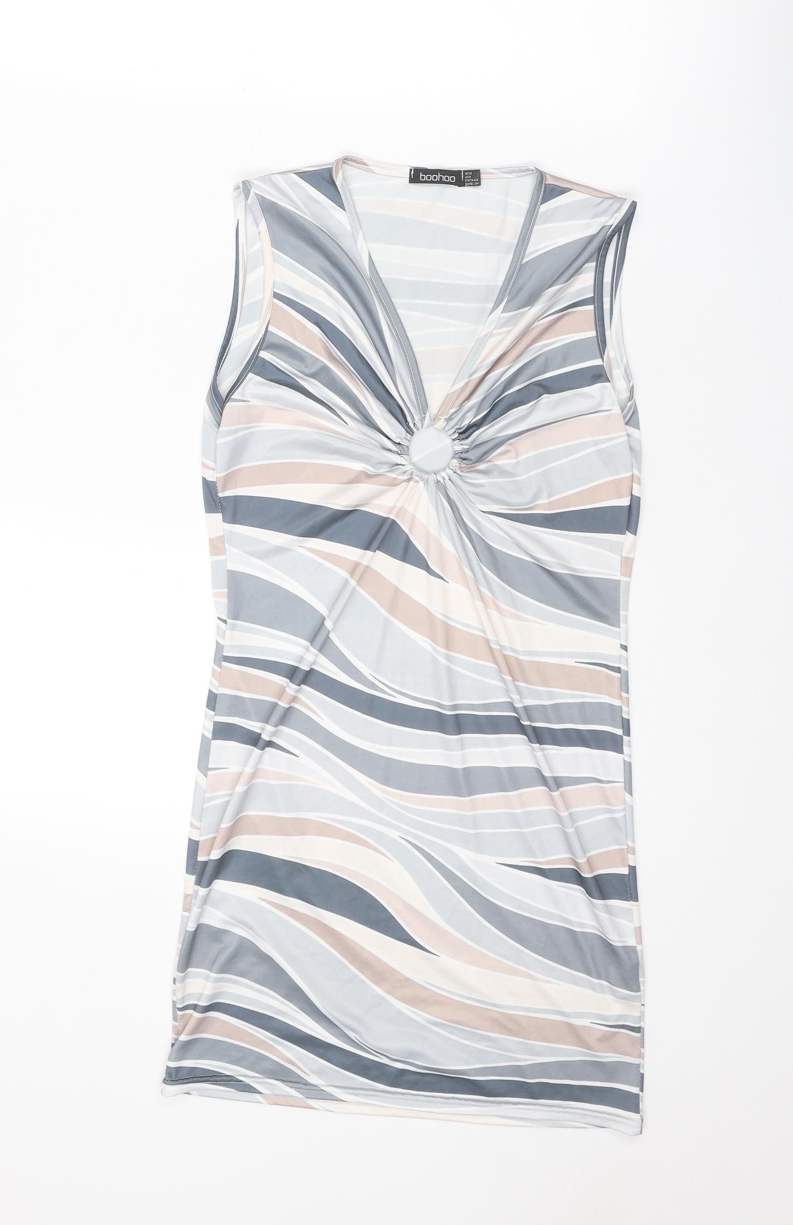 Boohoo Womens Multicoloured Geometric Polyester Mini Size 12 V-Neck Pullover - Ring Detail