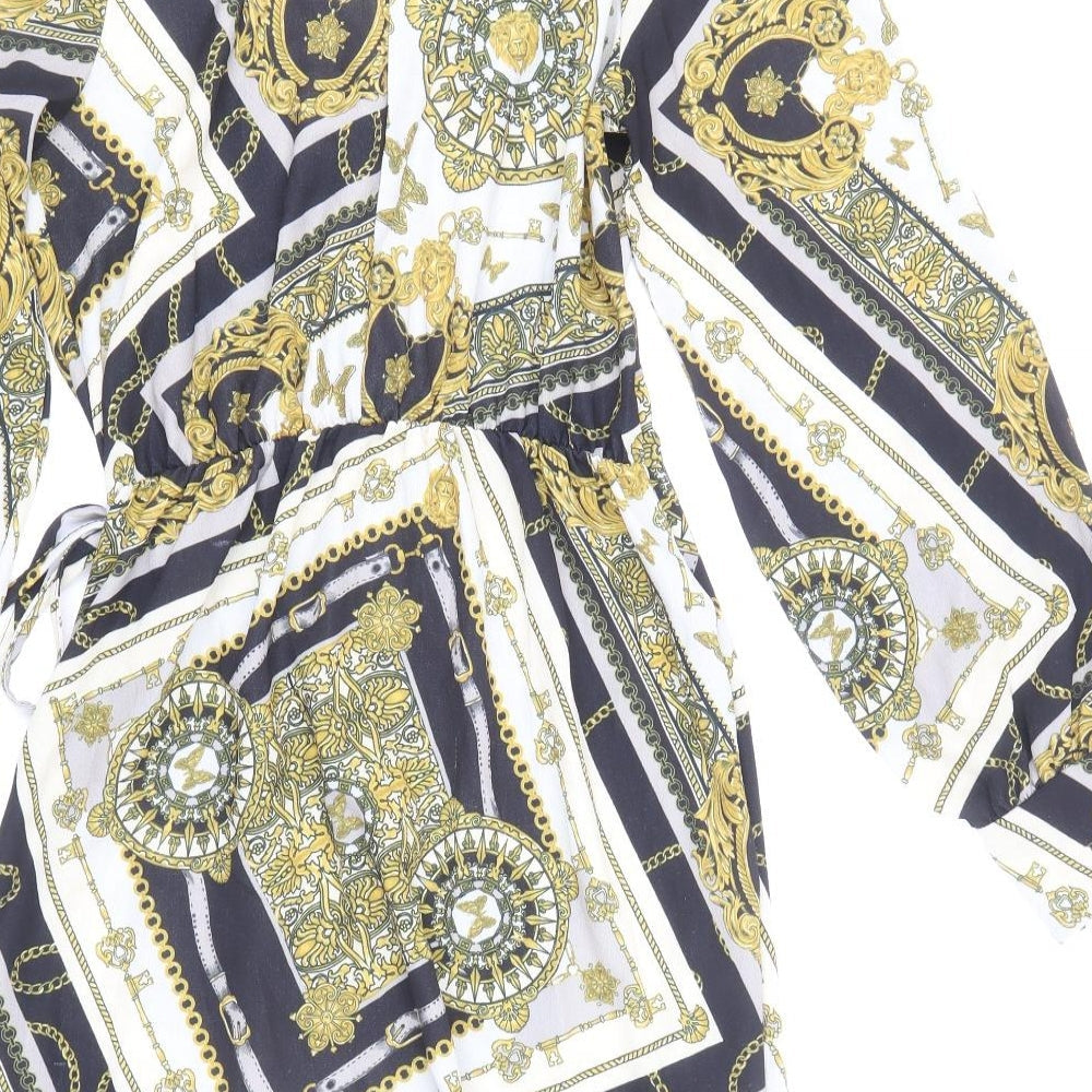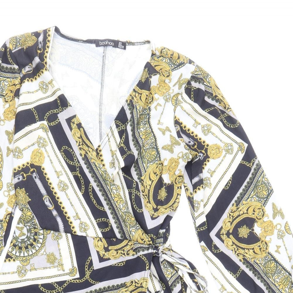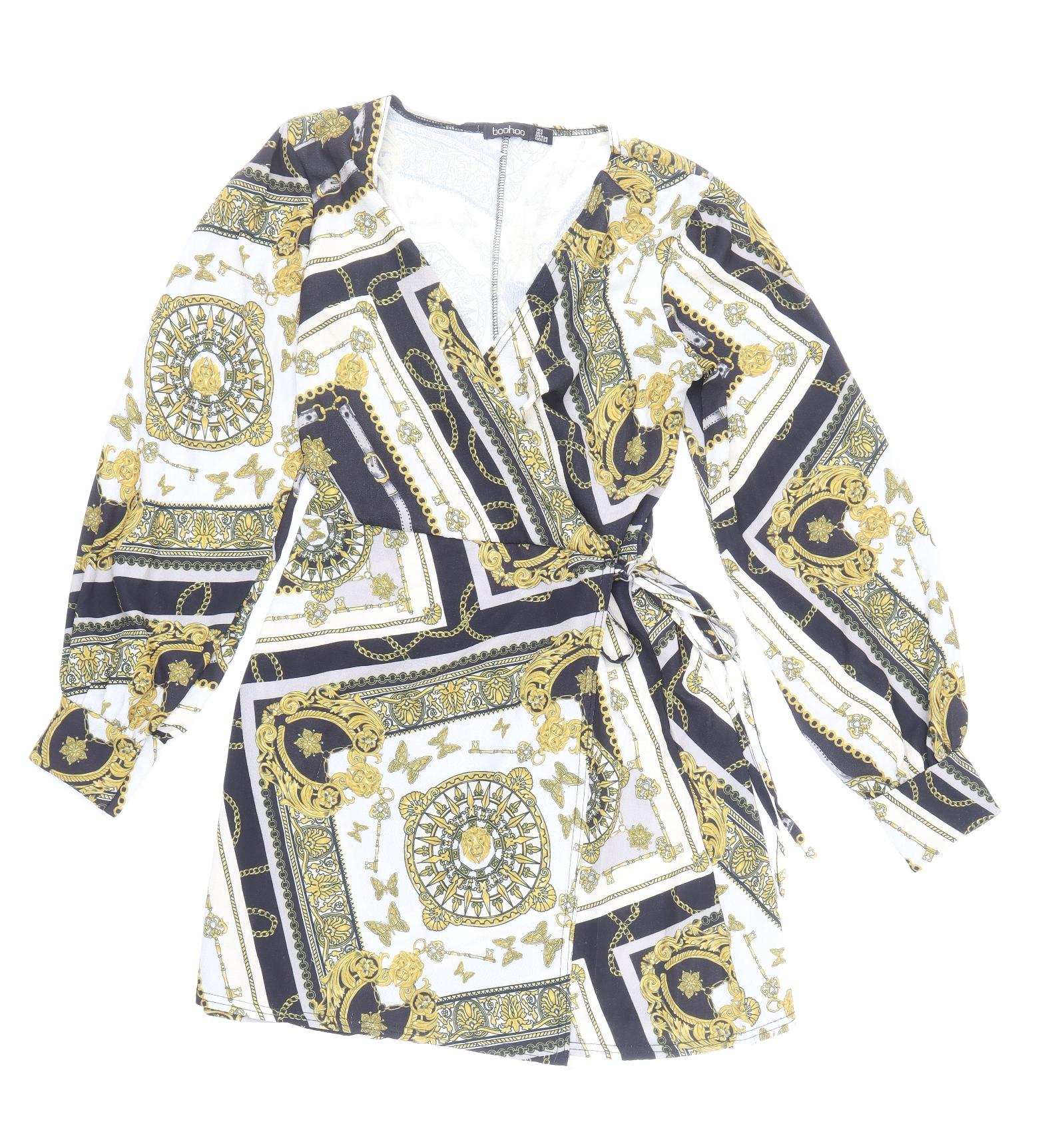 Boohoo Womens Multicoloured Geometric Polyester Wrap Dress Size 8 V-Neck Pullover