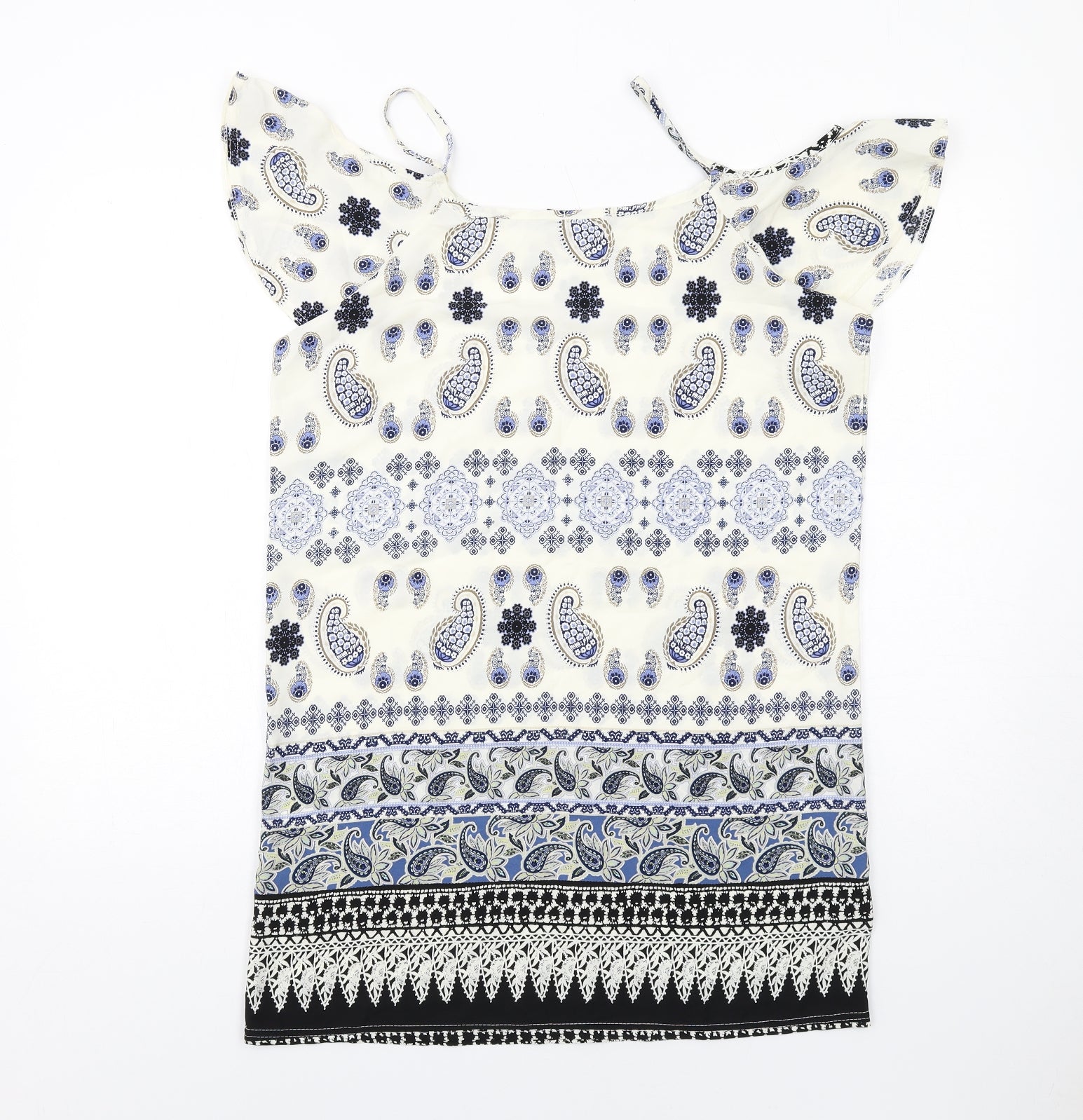 Boohoo Womens Multicoloured Paisley Polyester A-Line Size 10 Round Neck Pullover - Cold shoulder