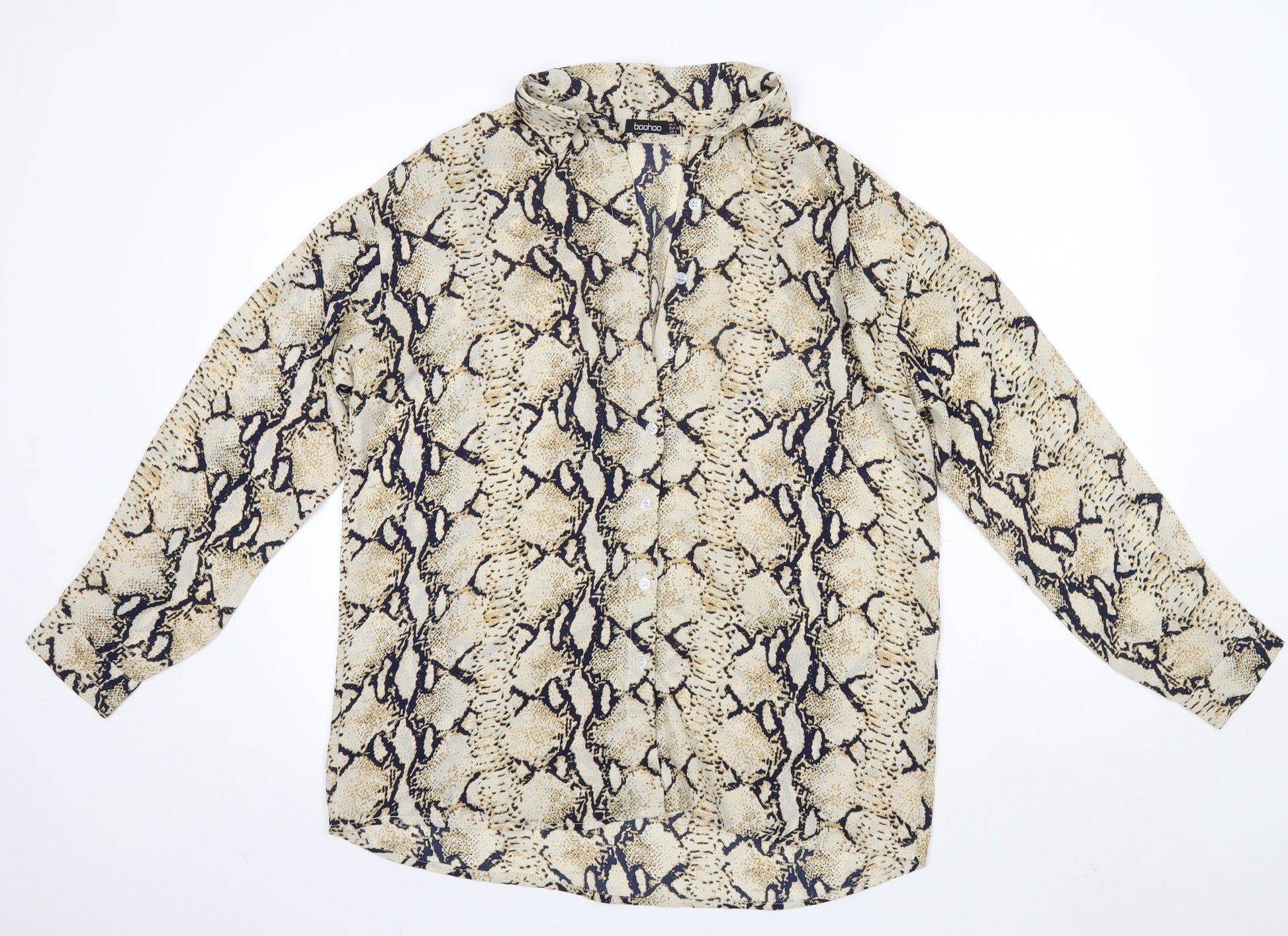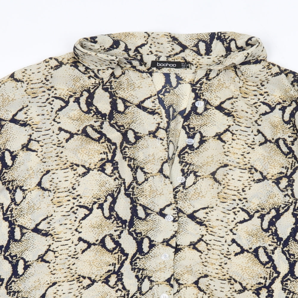 Boohoo Womens Multicoloured Polyester Basic Button-Up Size 12 Collared
