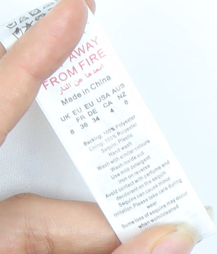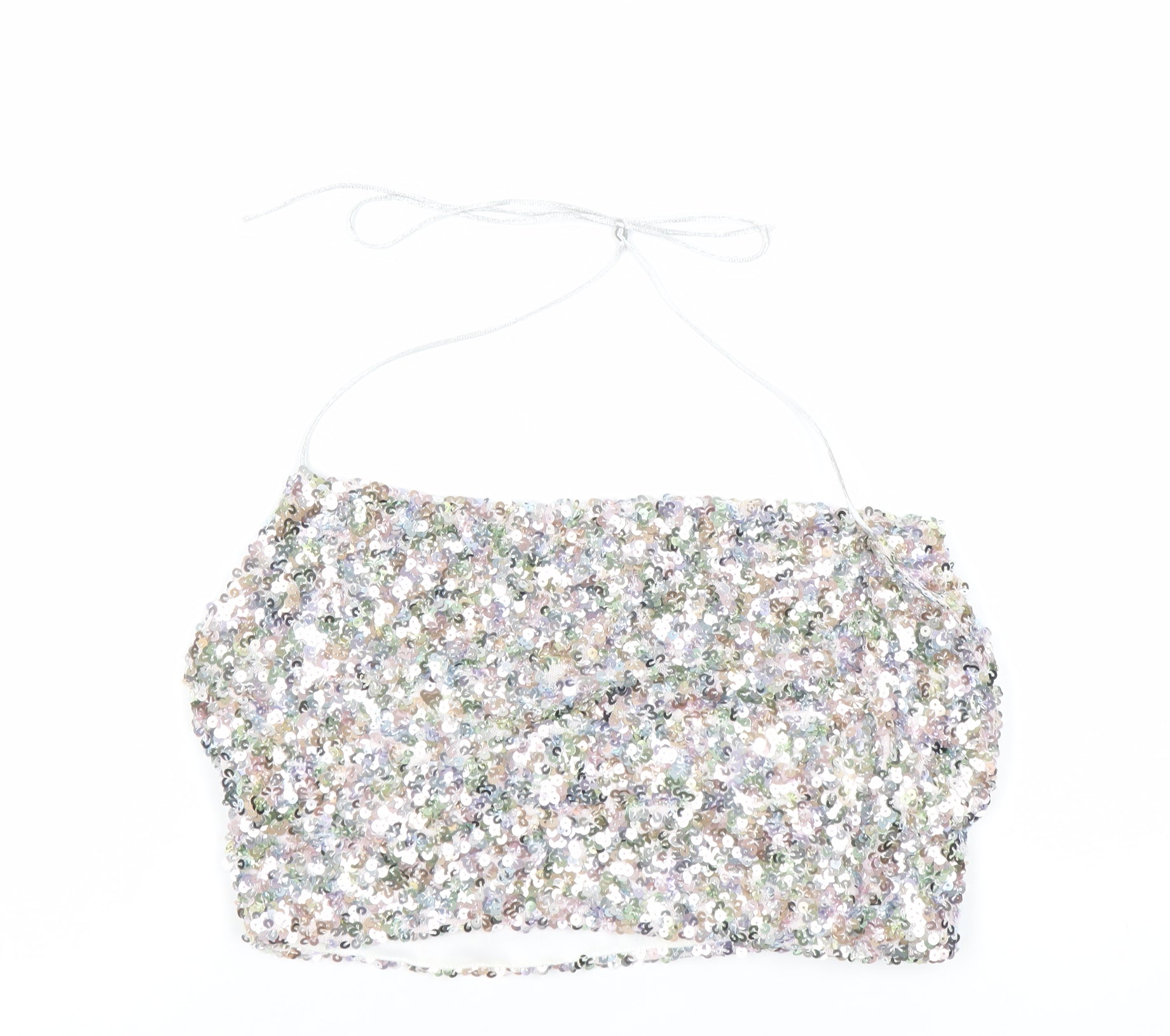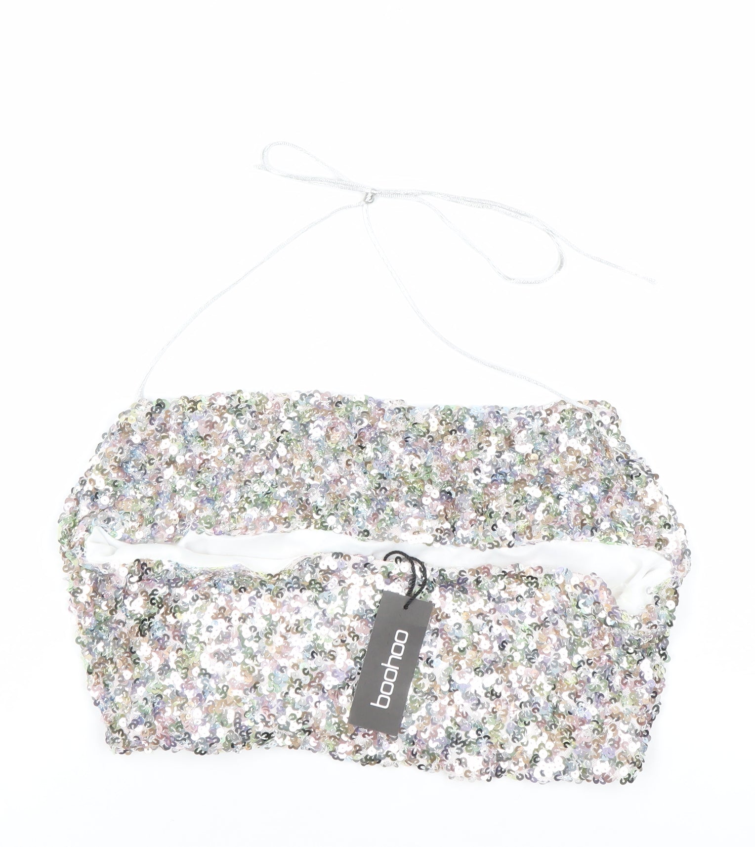 Boohoo Womens Multicoloured Sequin Halter Cropped Tank Top Size 8 Party