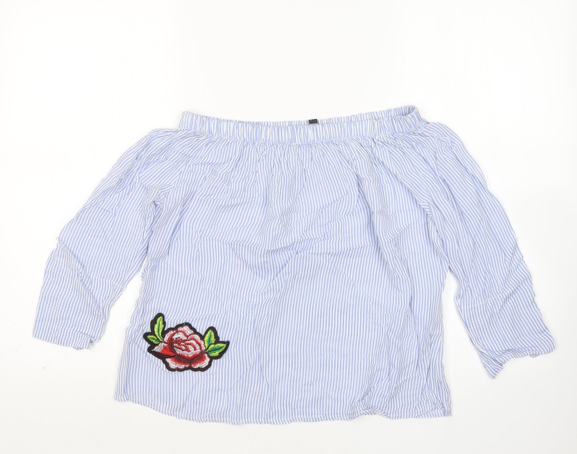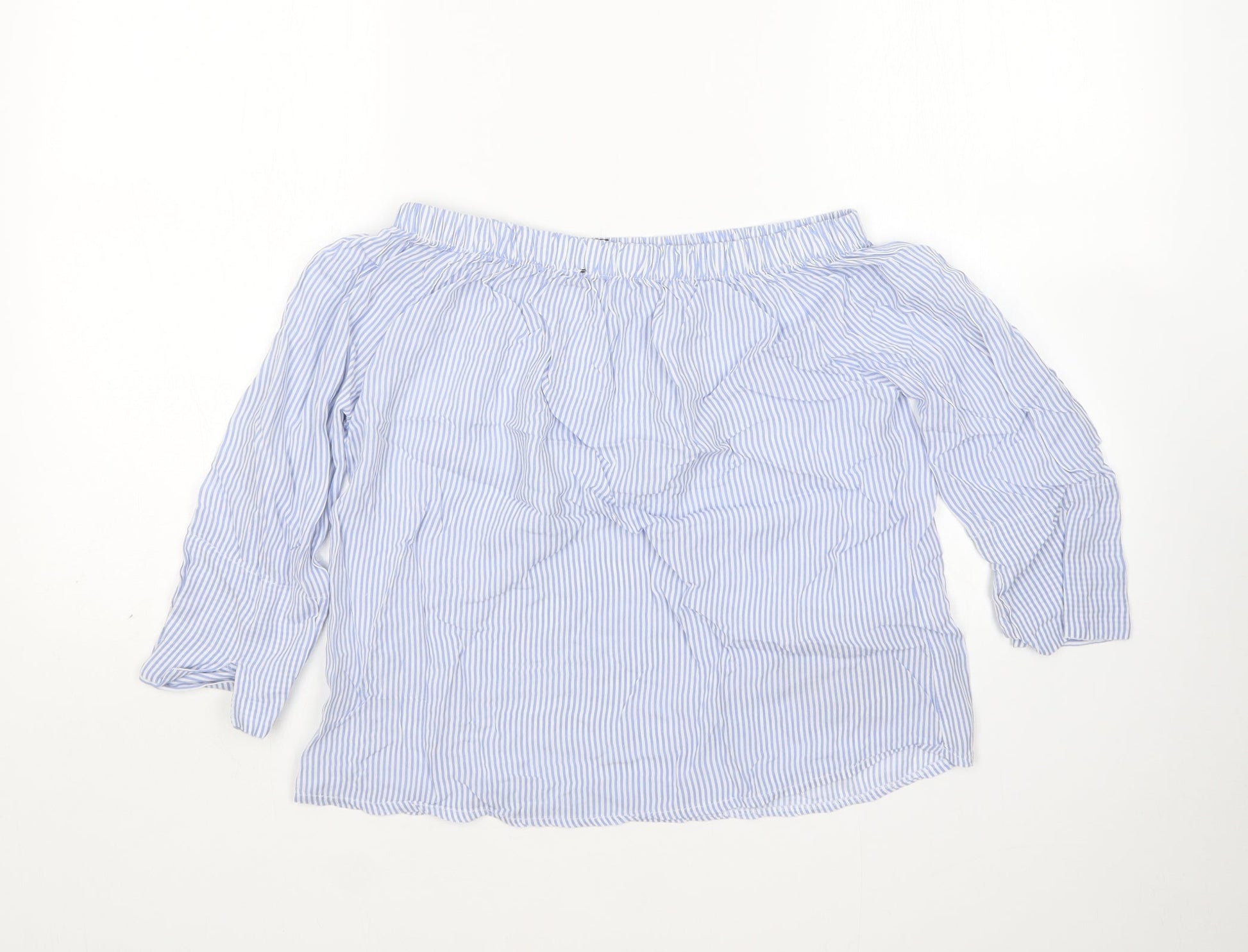 Boohoo Womens Multicoloured Striped Viscose Basic Blouse Size 8 Boat Neck