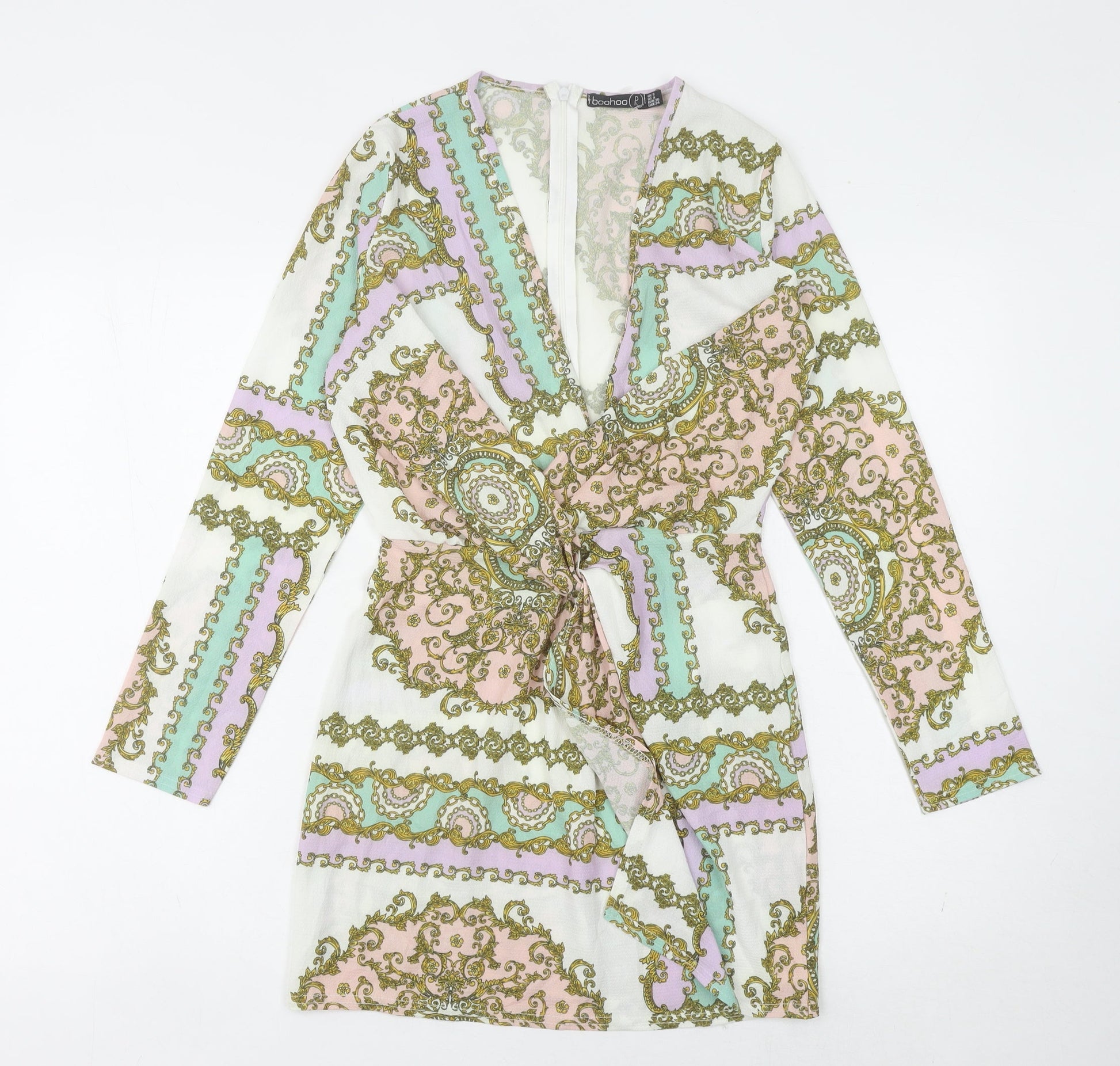 Boohoo Women's Multicoloured Wrap Dress Size 8