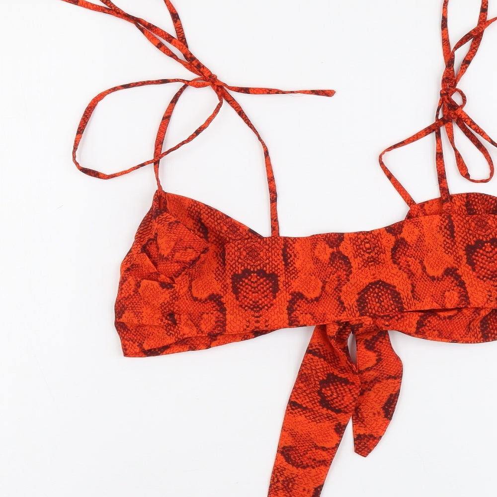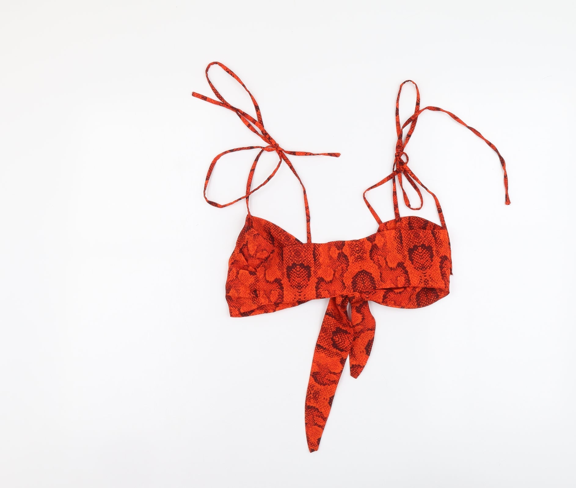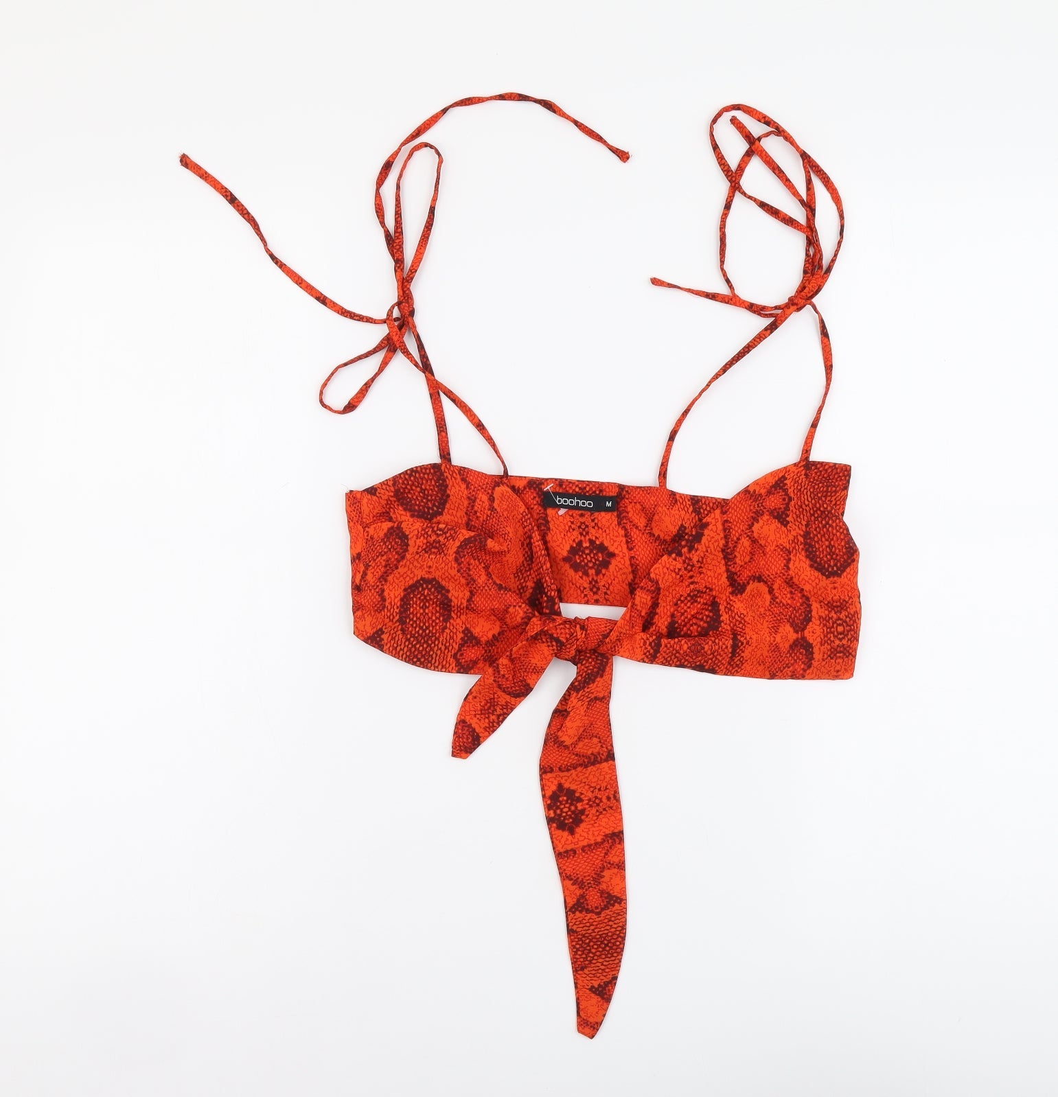 Boohoo Womens Orange Animal Print Polyester Cropped Blouse Size M Sweetheart