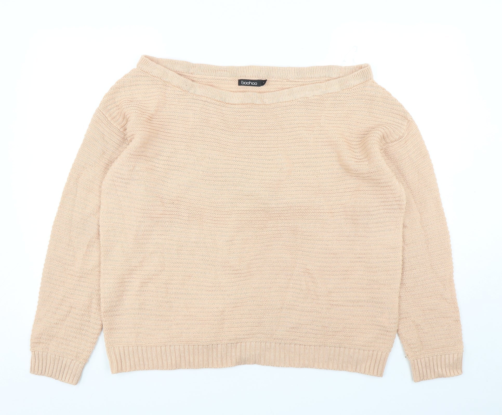 Boohoo Womens Orange Boat Neck Acrylic Pullover Jumper Size M