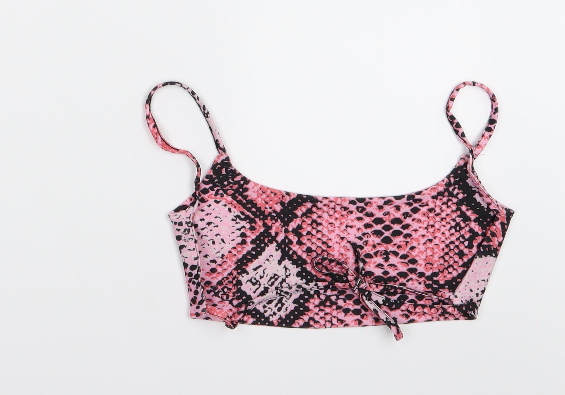 Boohoo Womens Pink Animal Print Basic T-Shirt Size 8