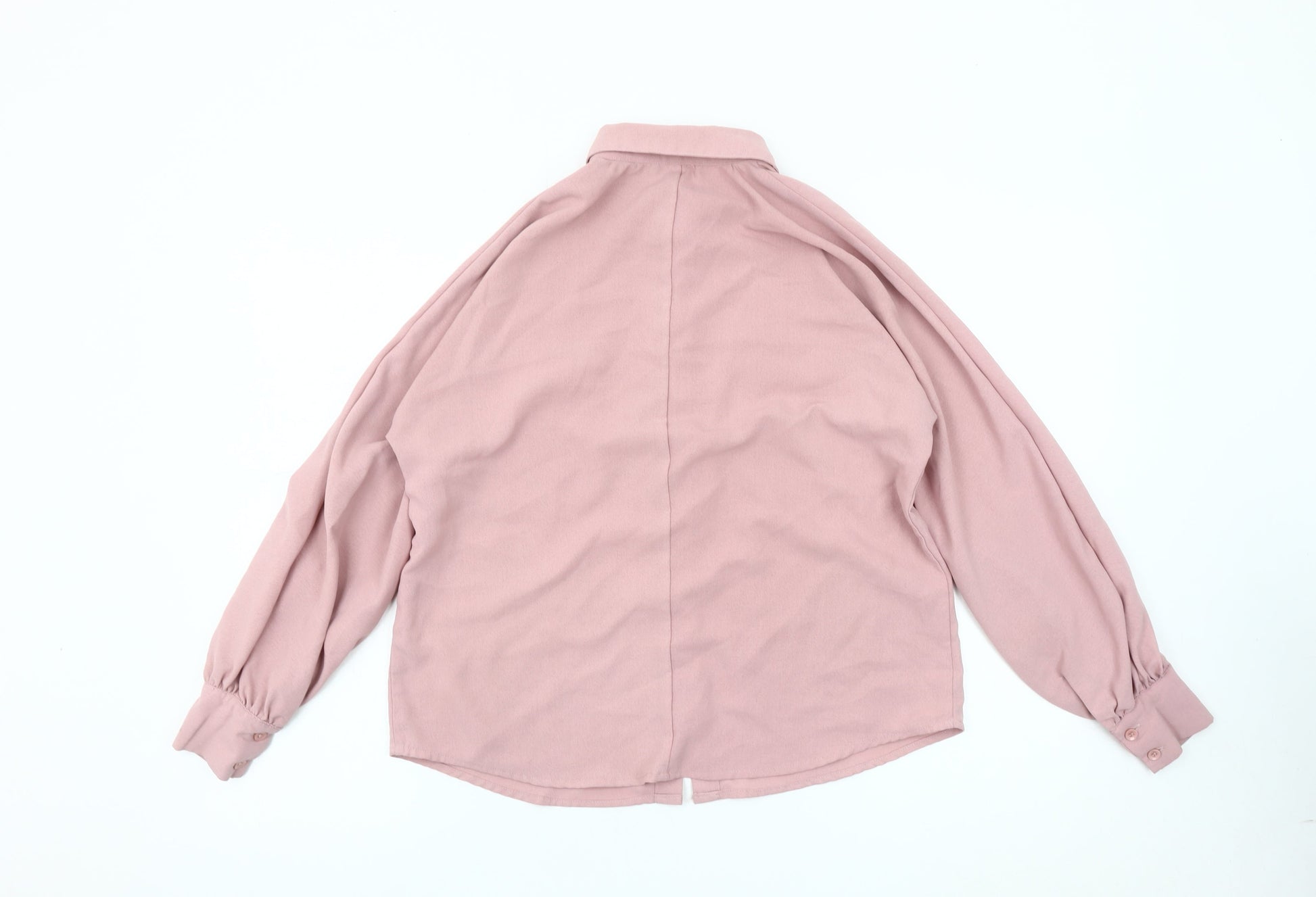 boohoo Women's Pink Button-Up Shirt, Size 6, Classic Style