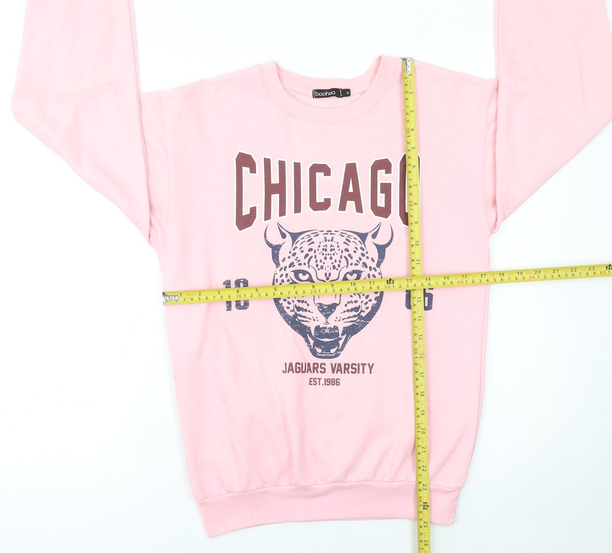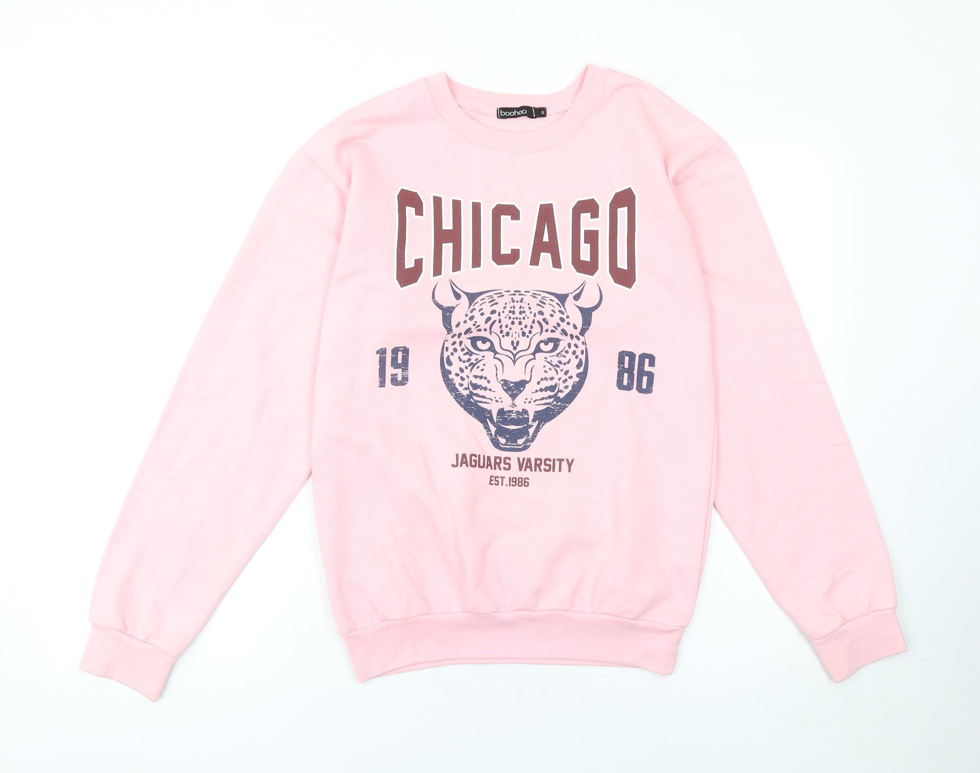 Boohoo Womens Pink Chicago Varsity Graphic Sweatshirt Size S