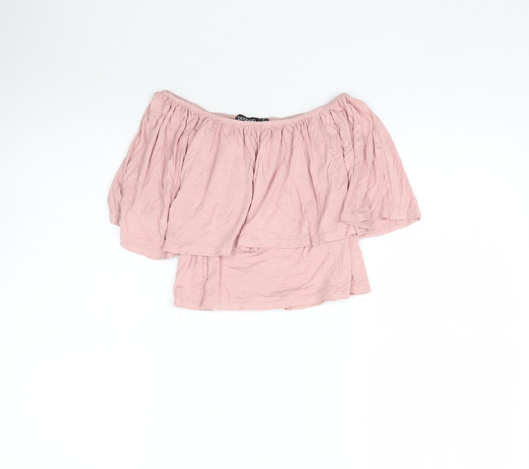 Boohoo Womens Pink Cropped Blouse Size 8