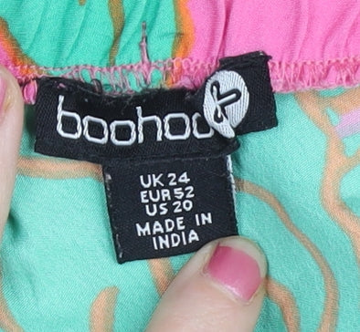 Boohoo Womens Pink Floral A-Line Midi Skirt Size 24 Plus