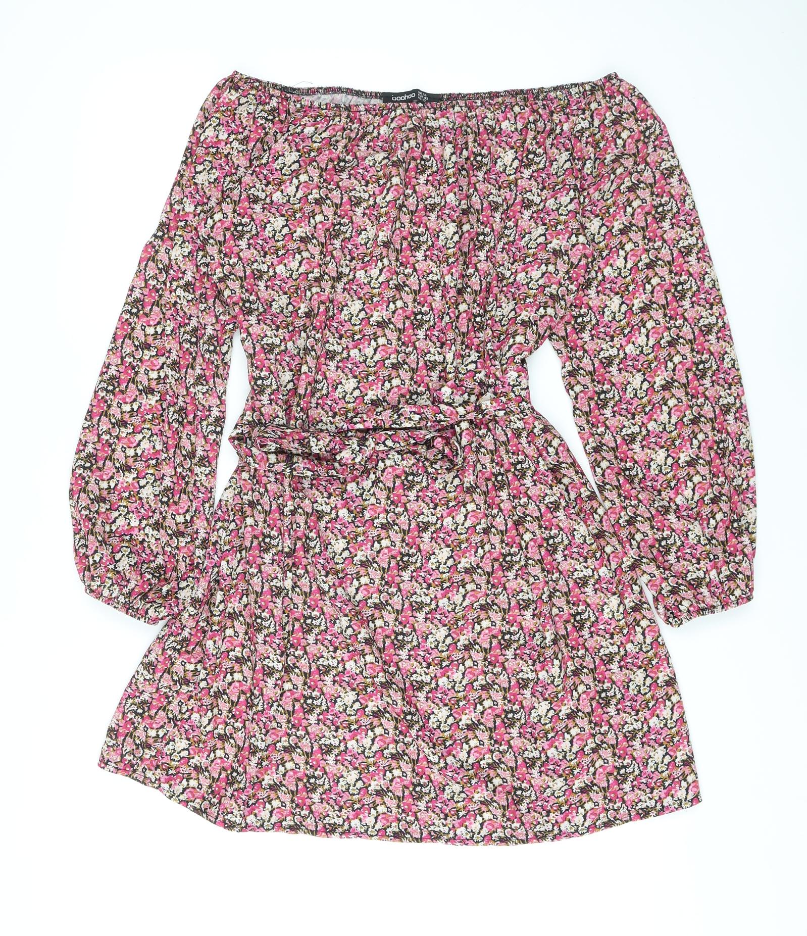 Boohoo Womens Pink Floral Polyester A-Line Size 14 Off the Shoulder Pullover