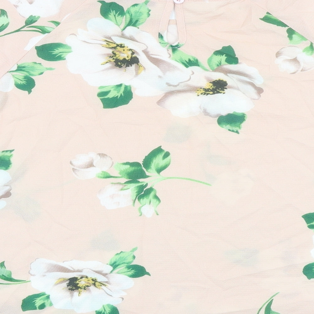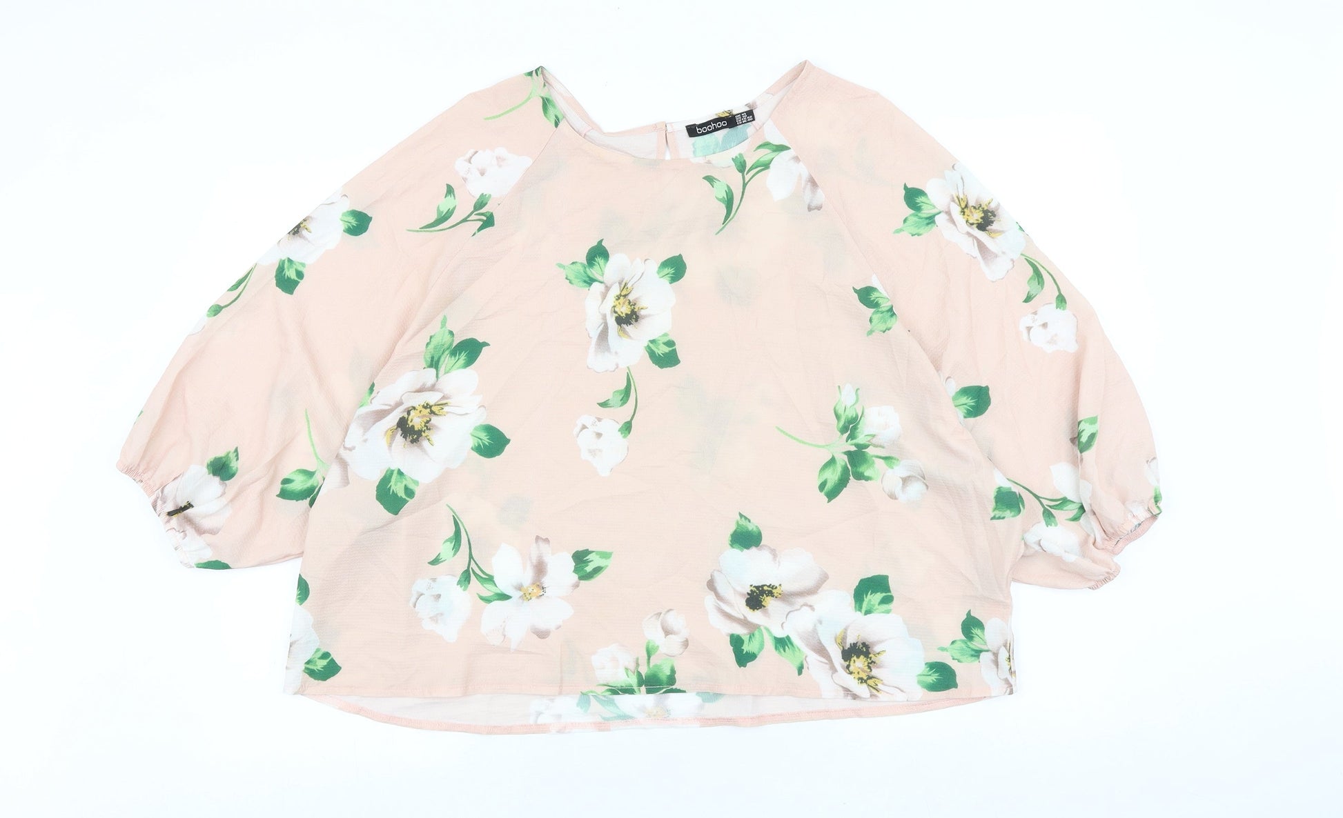 Boohoo Womens Pink Floral Polyester Basic Blouse Size 10 Round Neck