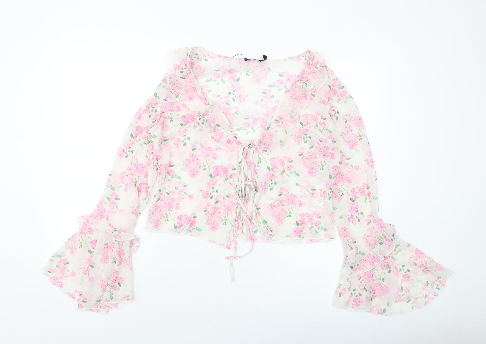Boohoo Womens Pink Floral Polyester Basic Blouse Size 12 V-Neck