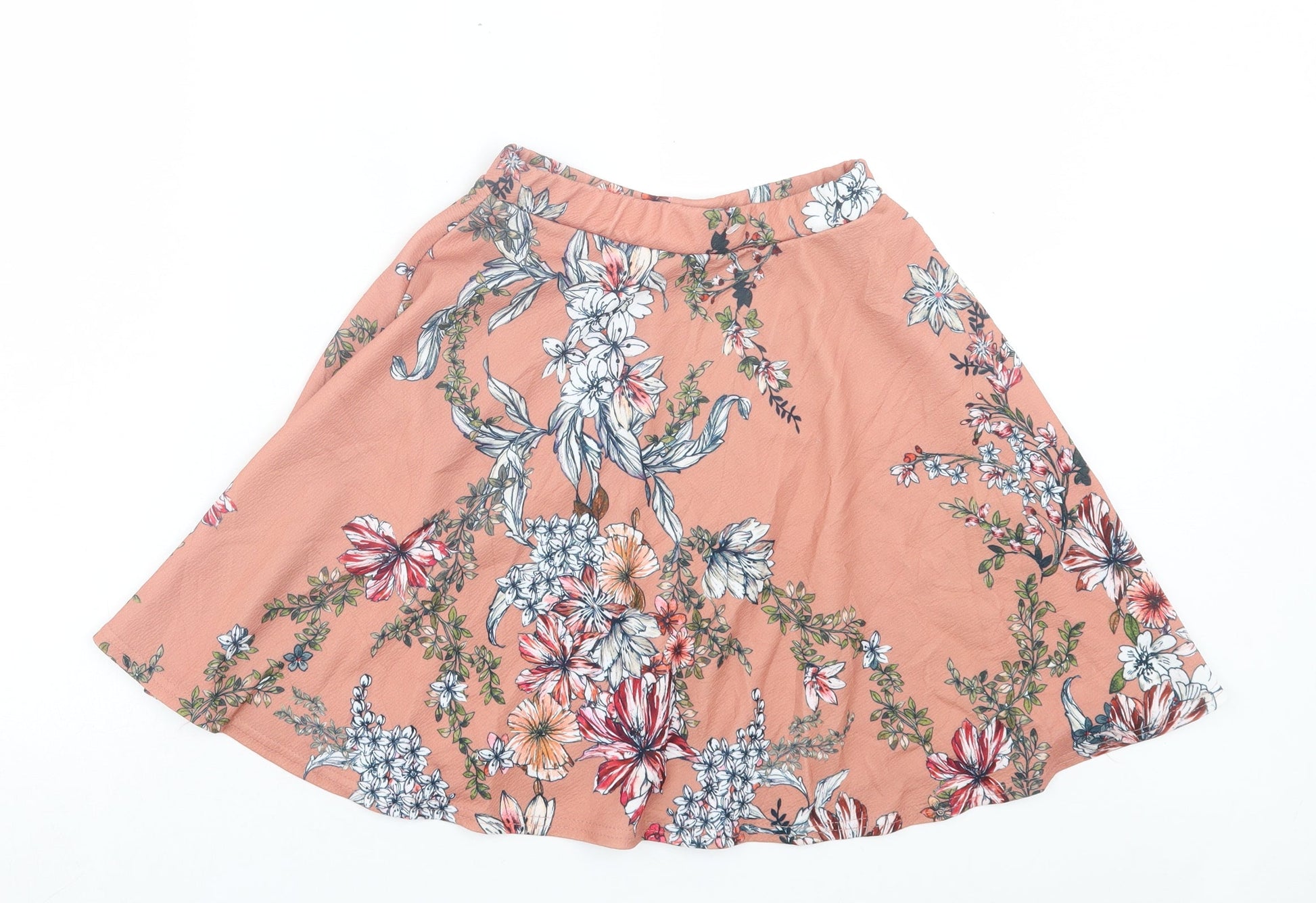 Boohoo Womens Pink Floral Polyester Skater Skirt Size 6