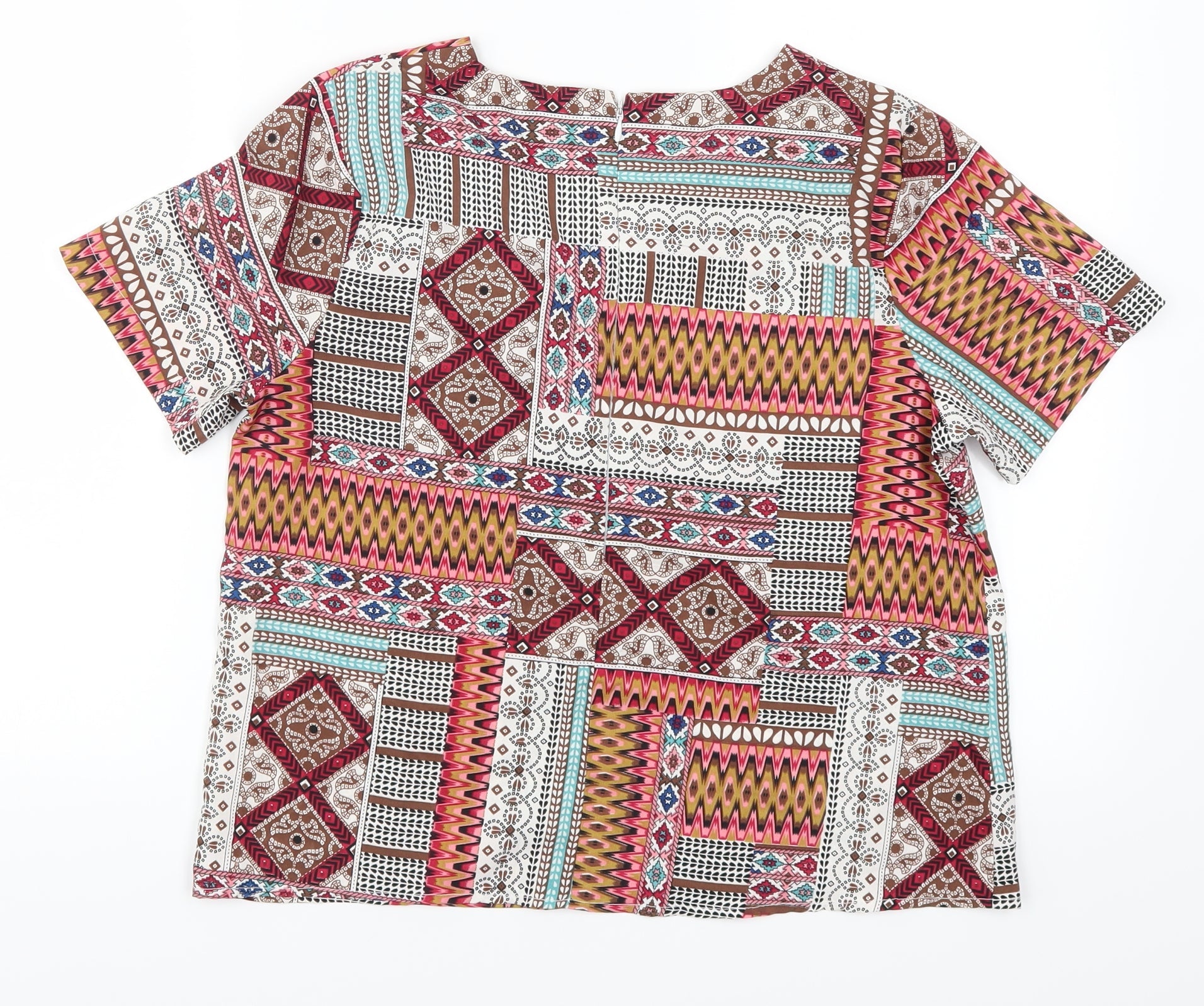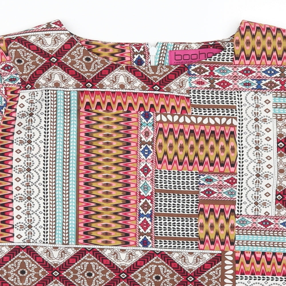 Boohoo Womens Pink Geometric Basic Blouse Size 8