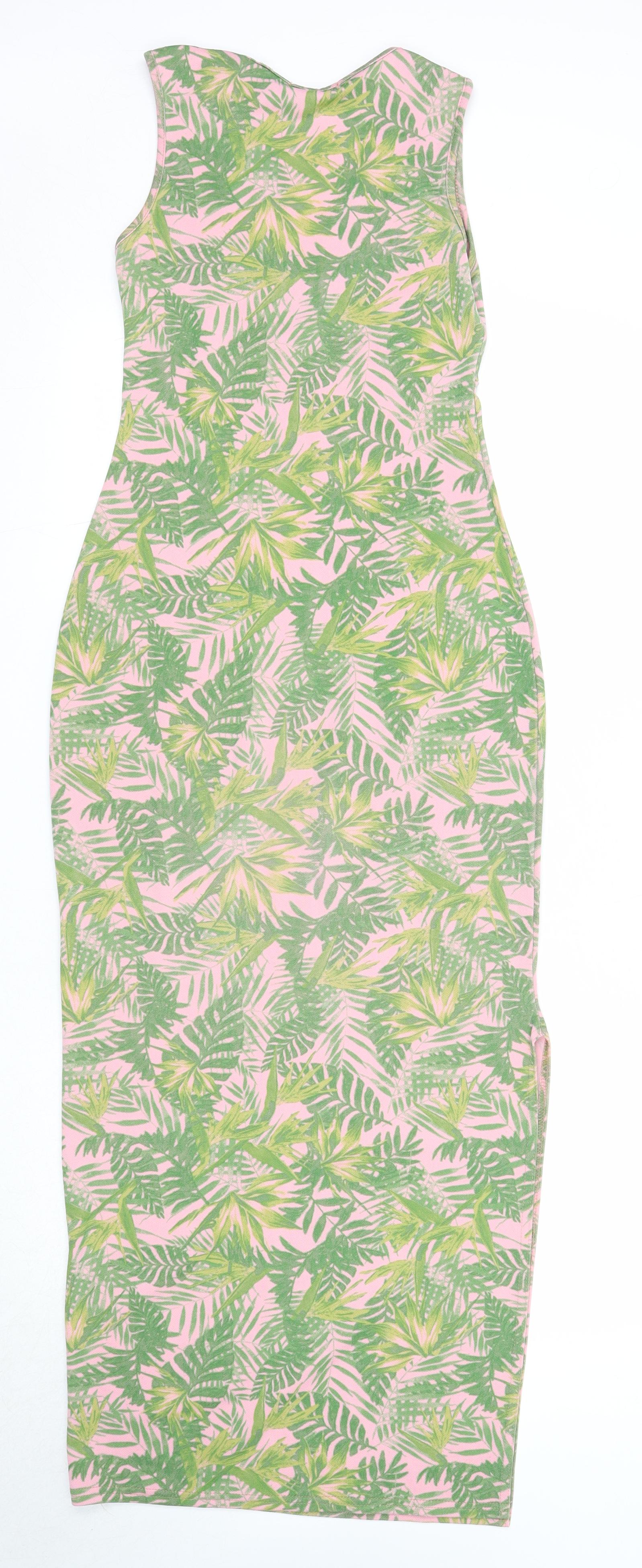 Boohoo Womens Pink Geometric Polyester Maxi Size 8 V-Neck Pullover - Palm Print