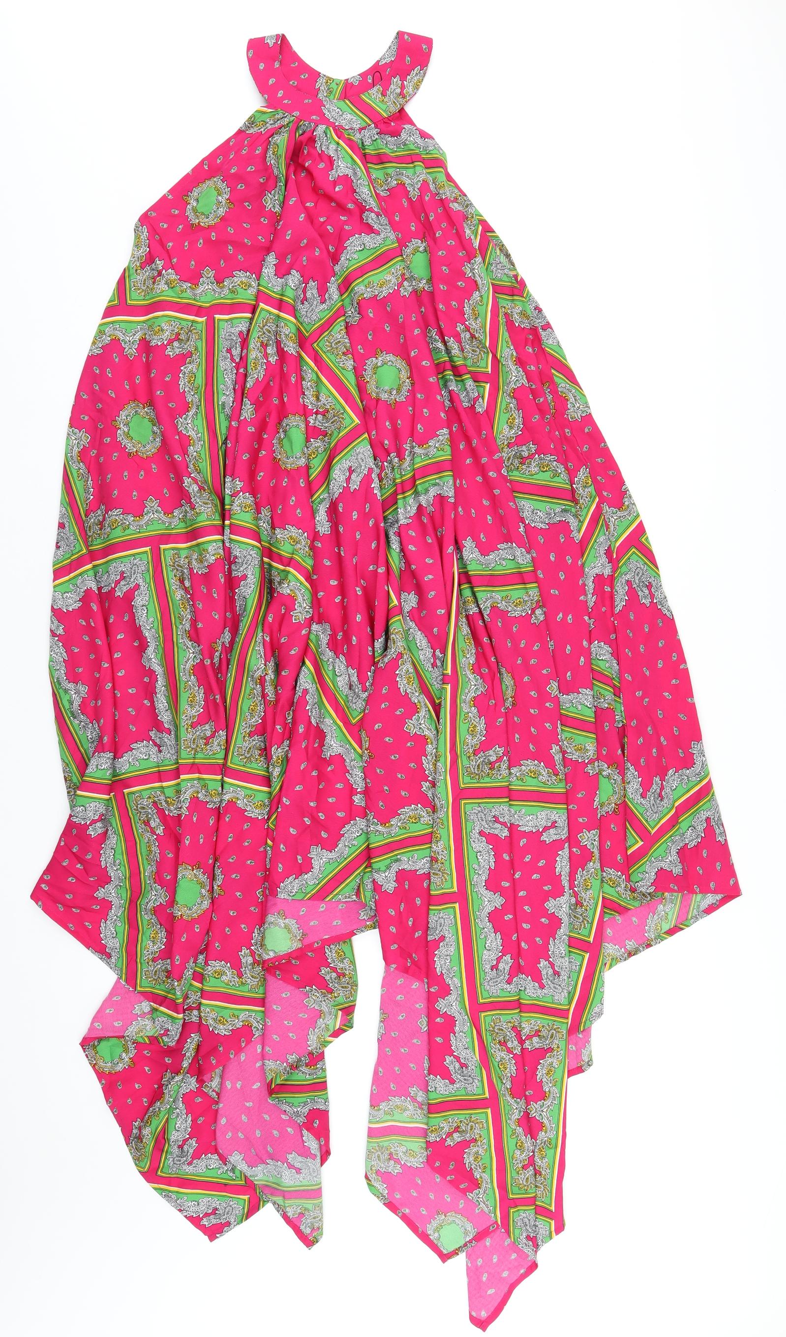 Boohoo Womens Pink Geometric Polyester Trapeze & Swing Size 8 Round Neck Button