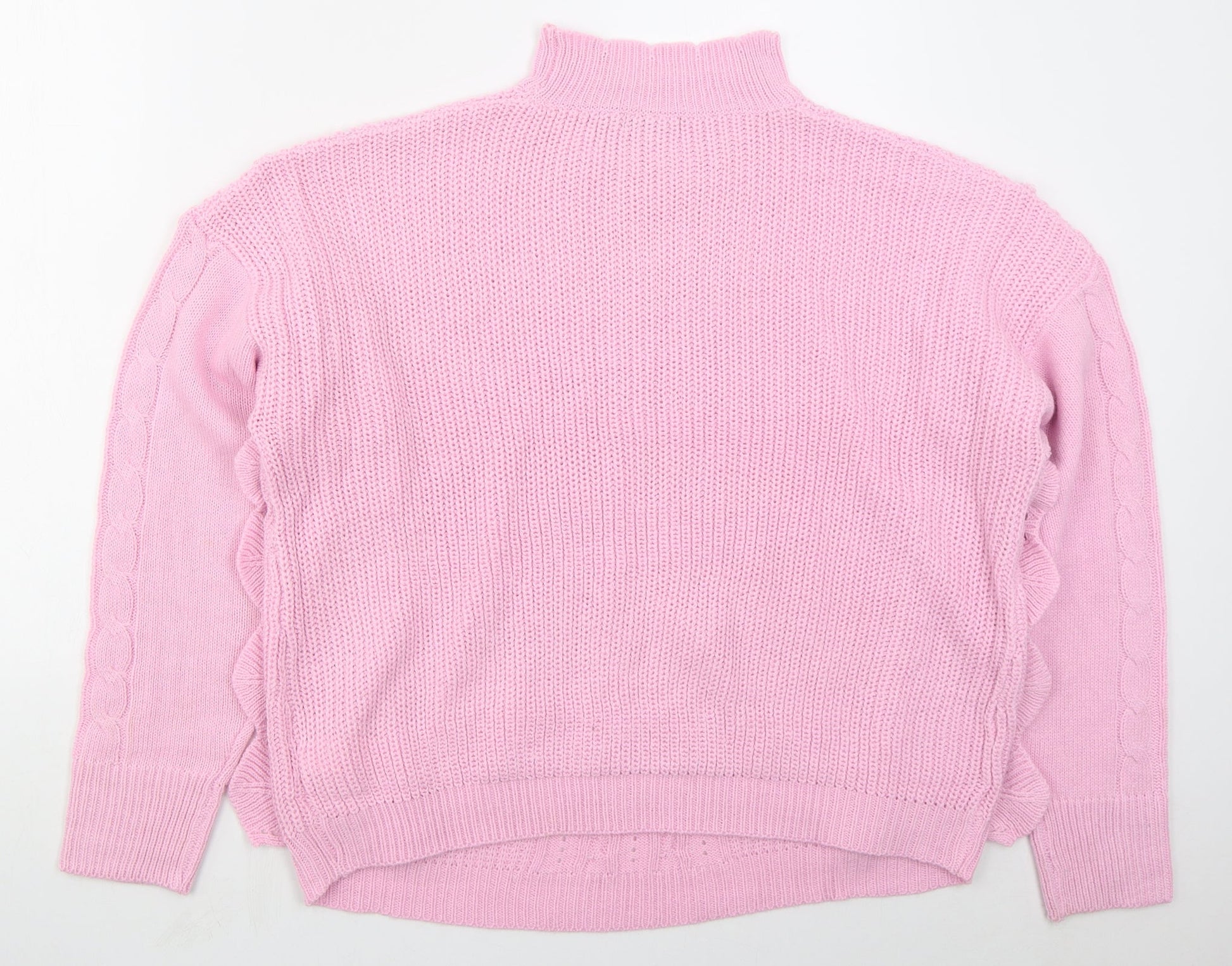 Boohoo Womens Pink High Neck Acrylic Pullover Jumper Size 14