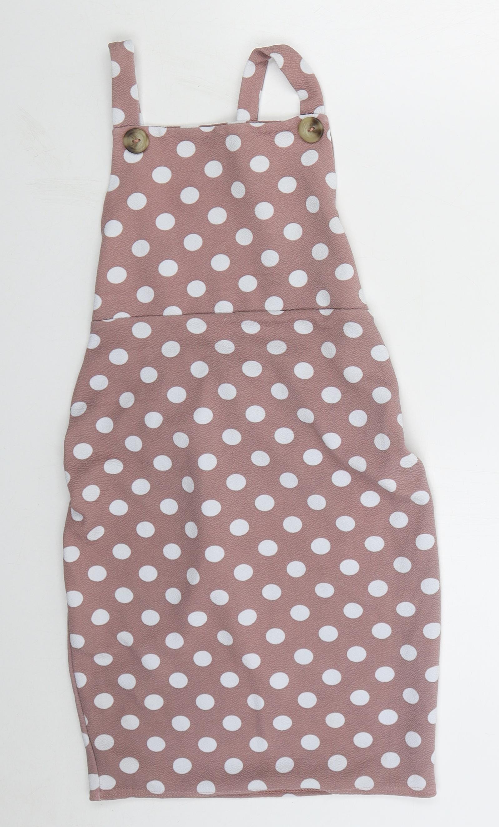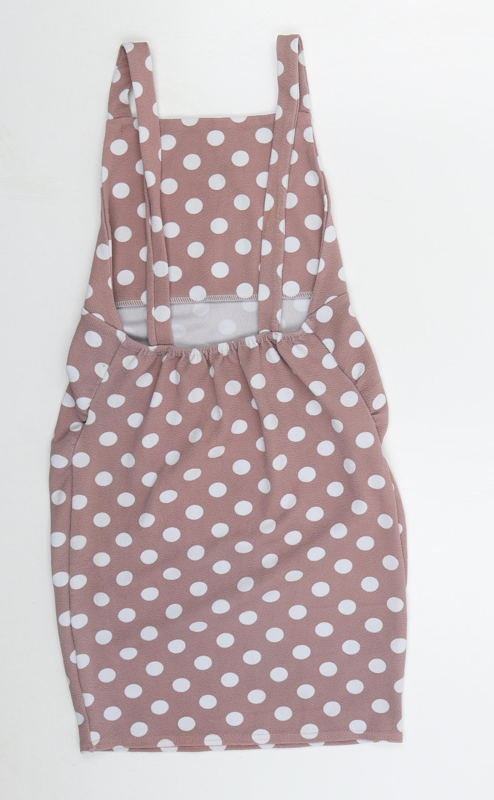 Boohoo Womens Pink Polka Dot Polyester Mini Size 8 Square Neck Pullover