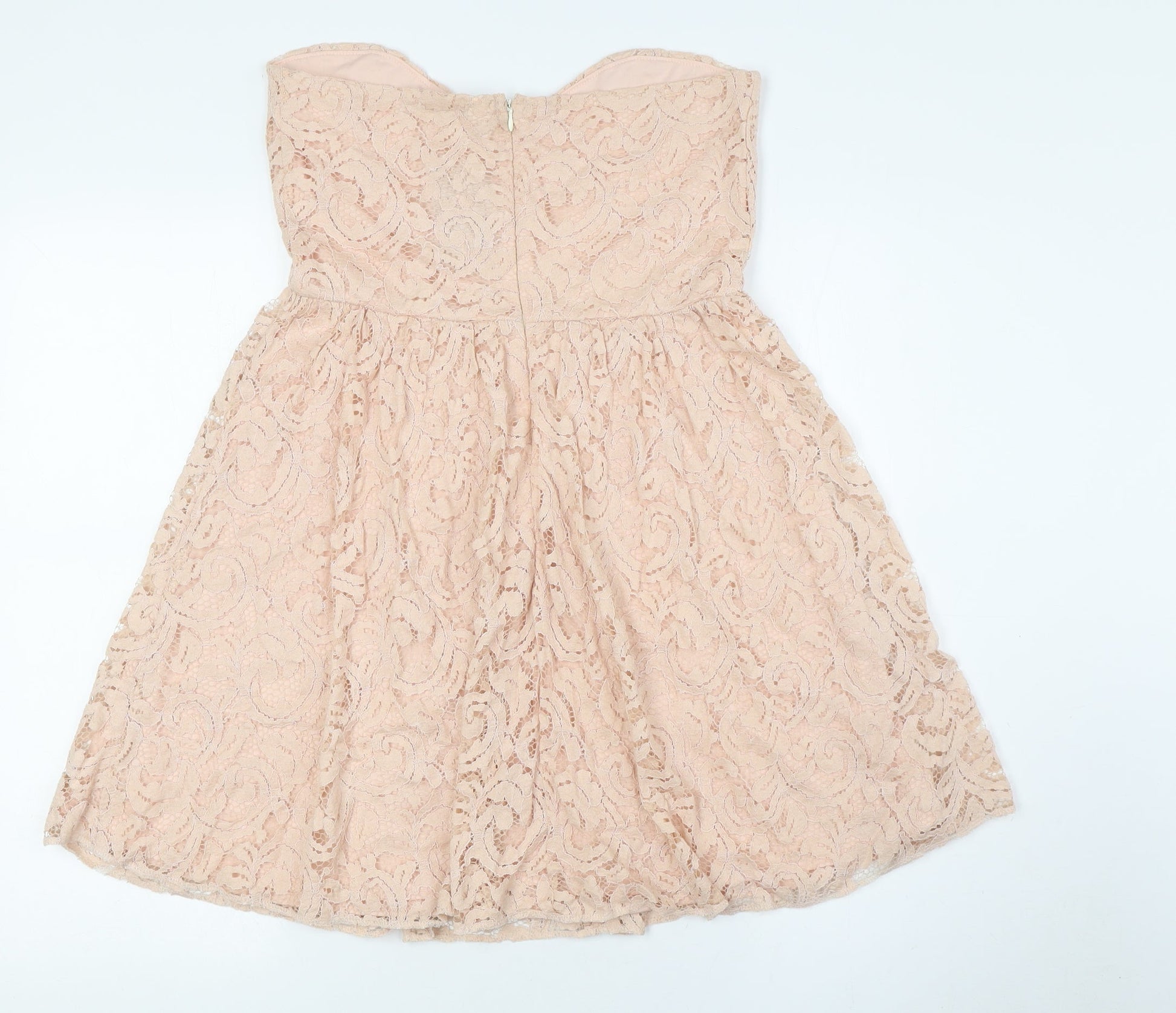 Boohoo Womens Pink Polyester A-Line Size 8 Off the Shoulder Zip - Lace Overlay