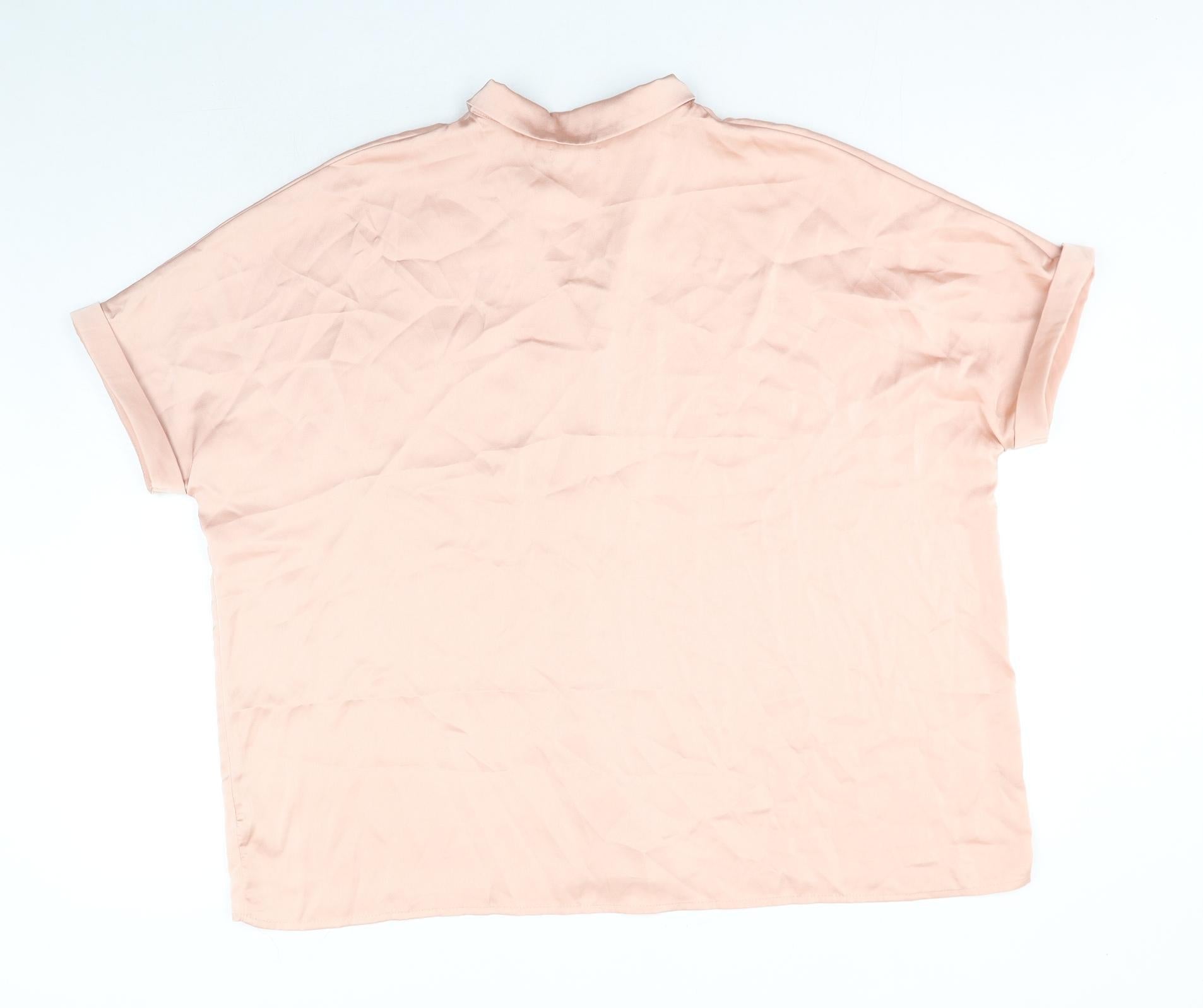 Boohoo Womens Pink Polyester Basic Button-Up Size 14 Collared