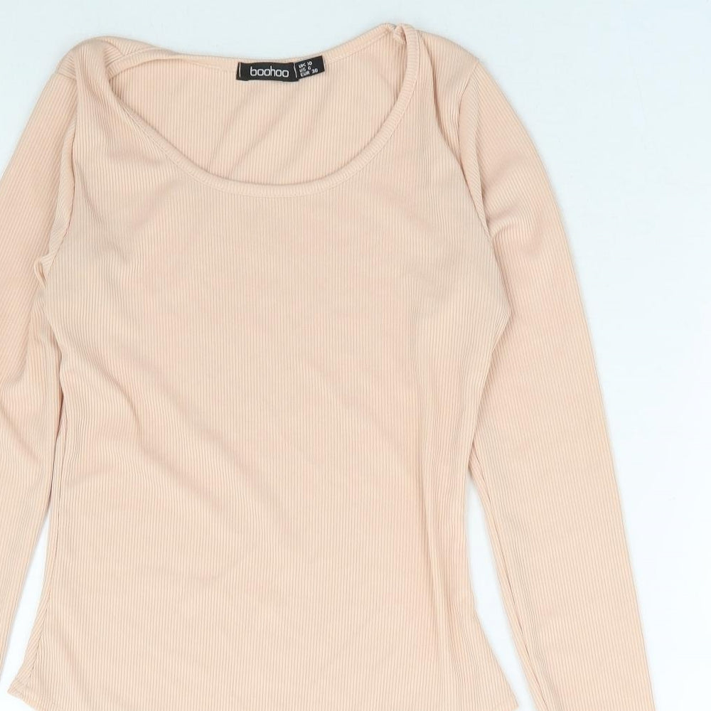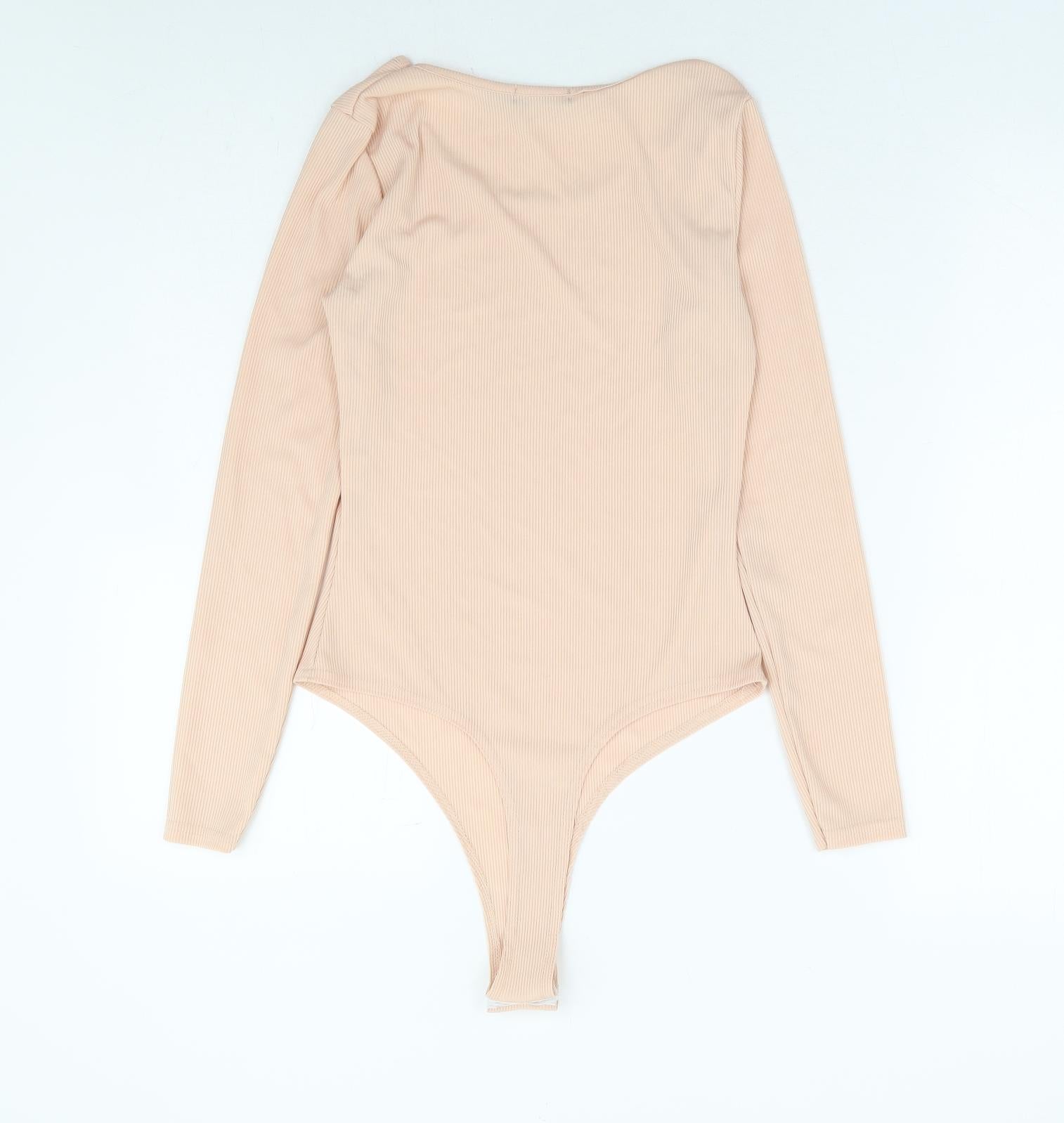 Boohoo Womens Pink Polyester Bodysuit One-Piece Size 10 Snap - Ribbed