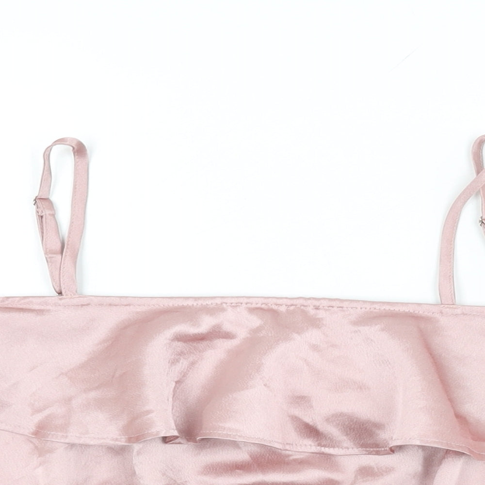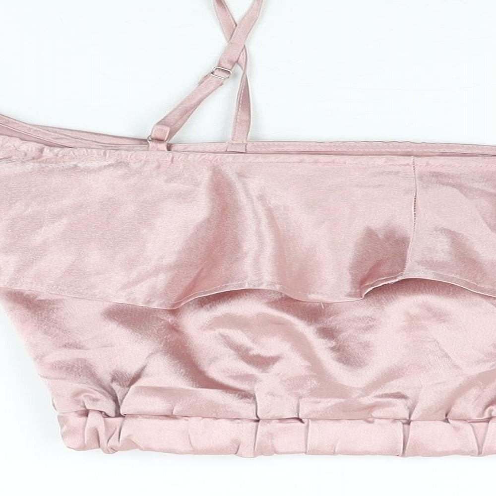 Boohoo Womens Pink Polyester Cropped T-Shirt Size 10 Off the Shoulder